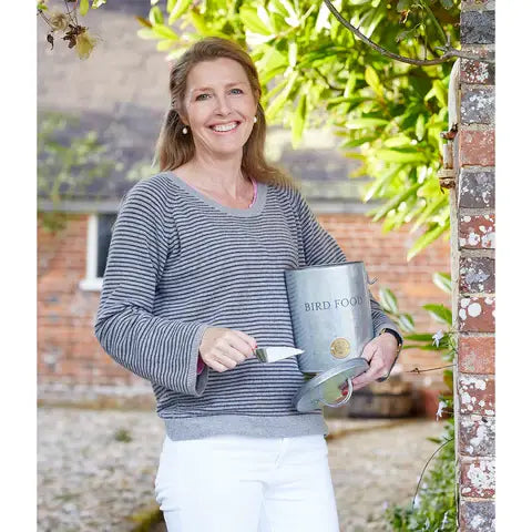 The Galvanized Bird Food Tin offers a practical and durable solution for storing bird food while keeping pests at bay. Crafted from galvanized metal, it resists rust and wear, ensuring long-lasting use both indoors and outdoors. The pest-proof design safeguards your bird feed from unwanted visitors, while the included handy scoop allows for easy and mess-free refills. Its compact size fits comfortably under your arm, making it convenient to carry and use. Part of the Sophie Conran range, this tin combines functionality with elegant design, helping you maintain an organized and efficient feeding routine.