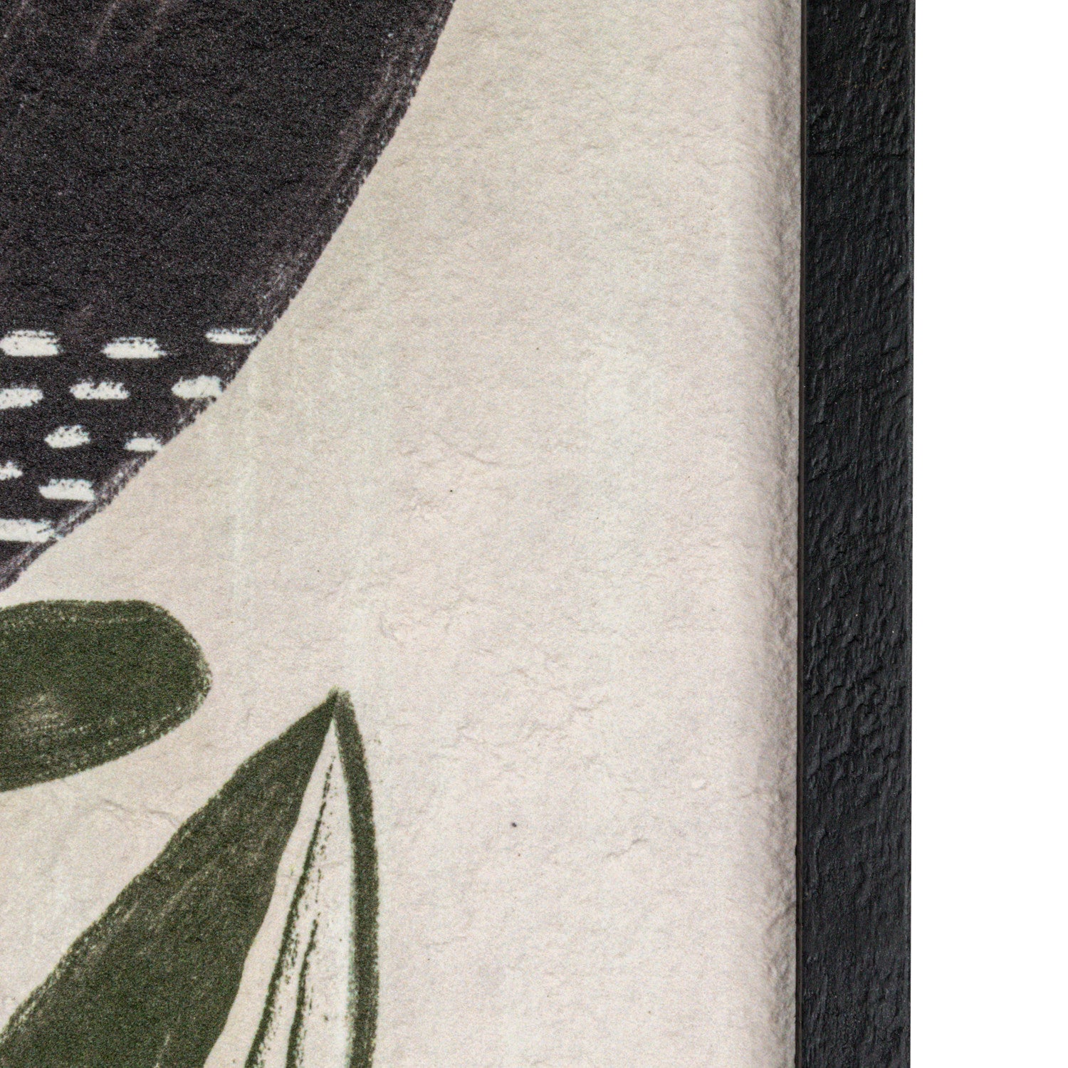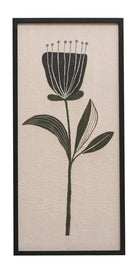 14"L x 30"H Wood Framed Textured Paper Wall Décor w/ Flower Image, Black, Green & Cream Color, 2 Styles