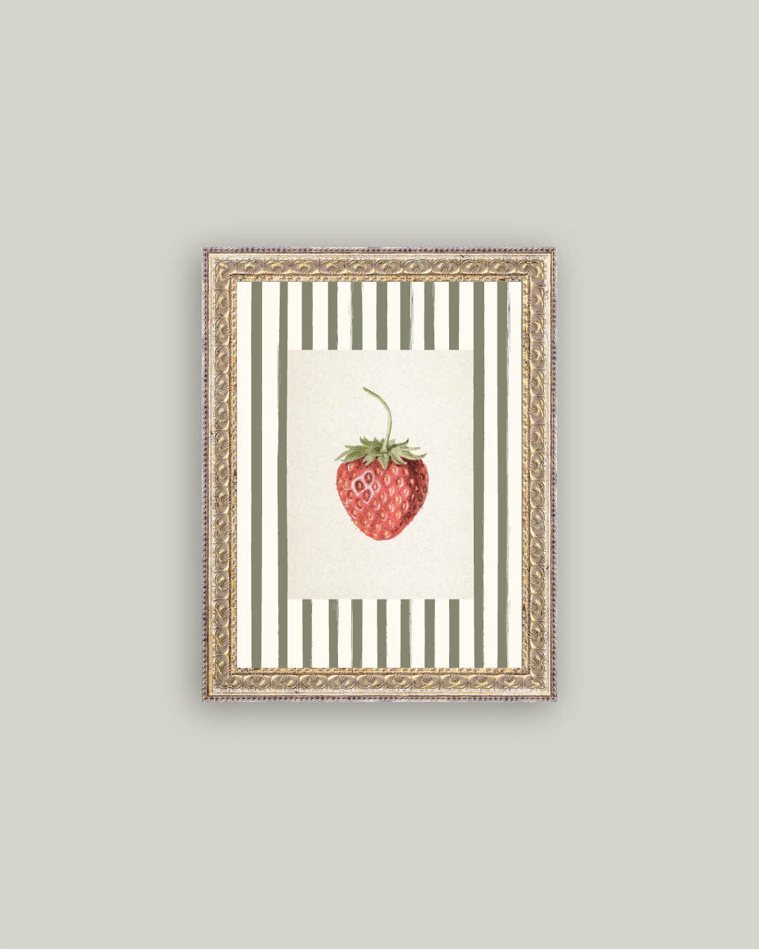 Strawberries on Stripes Framed Antique Ar