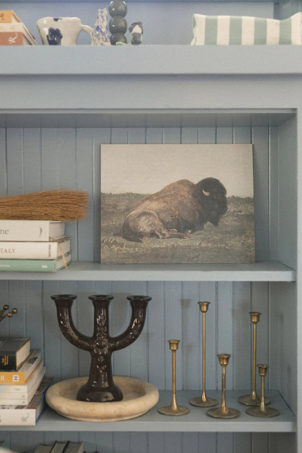 Artist boards add a sophisticated touch of personality and aesthetic appeal to your living space. This Resting Bison Artist Board measures 14 by 11 inches, making it an ideal size for various display options, from accent pieces on shelves to focal points on walls. The artwork is a high-quality canvas print mounted on a durable hardboard, ensuring both visual richness and long-lasting stability. Its timeless design and sturdy construction make it a refined addition to any room, enhancing your home’s atmosphere with effortless charm and expert craftsmanship.