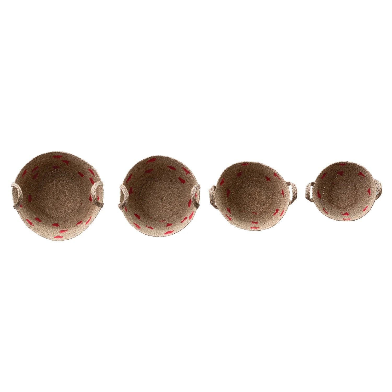 Handcrafted from natural seagrass, these charming baskets feature delicate embroidered hearts and sturdy handles, making them perfect for storage, display, or gifting. Each basket is skillfully woven to create a warm, rustic aesthetic that complements any room. Available in four sizes—Small (10" Round x 8"H), Medium (12" Round x 10"H), Large (13-3/4" Round x 12"H), and Extra Large (15-3/4" Round x 13-3/4"H)—so you can find the ideal fit for your space. The natural fiber construction adds texture and organic beauty while remaining durable and versatile for everyday use.