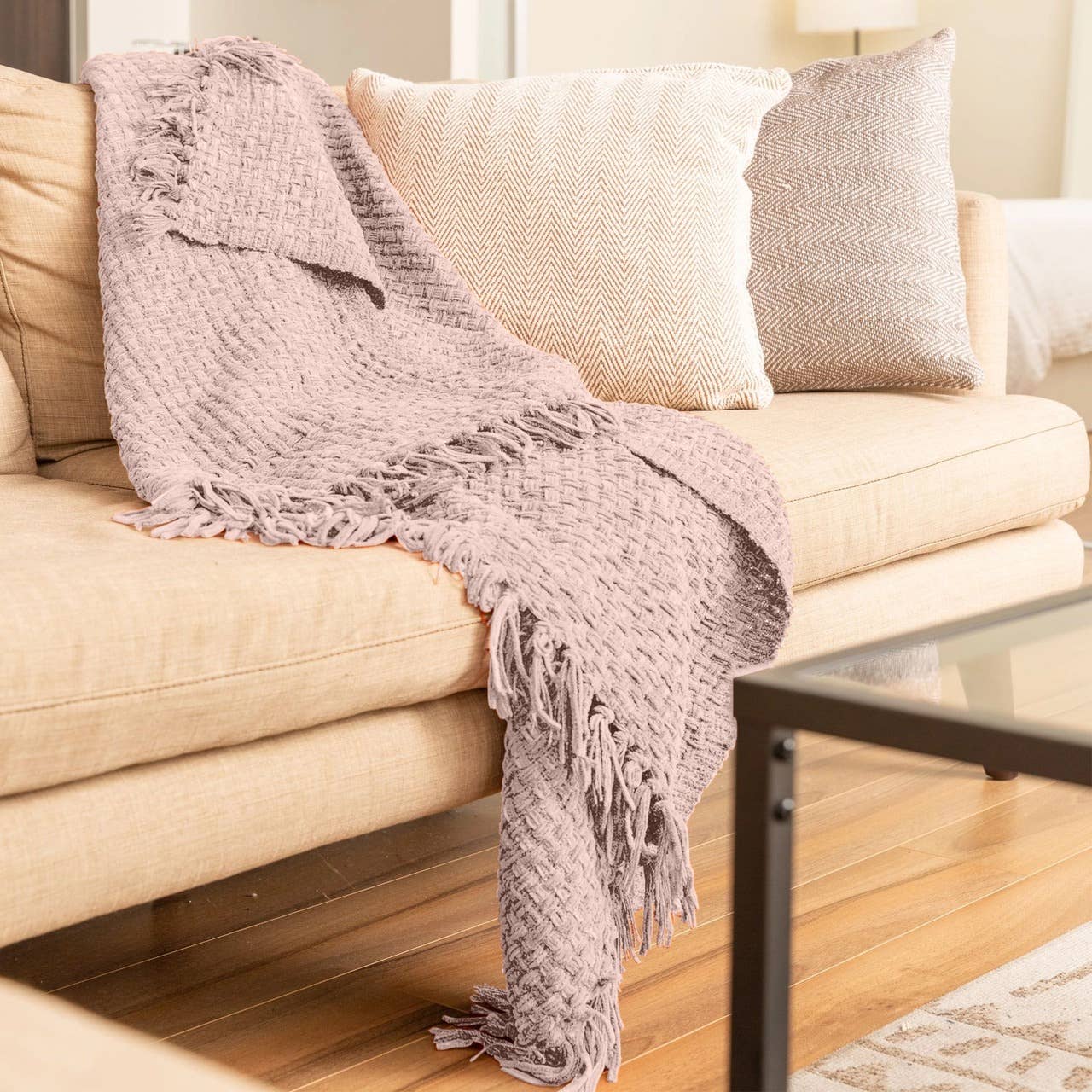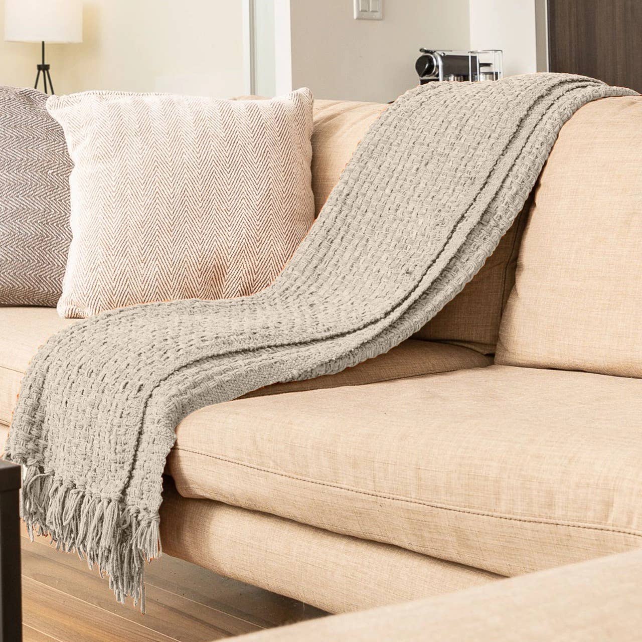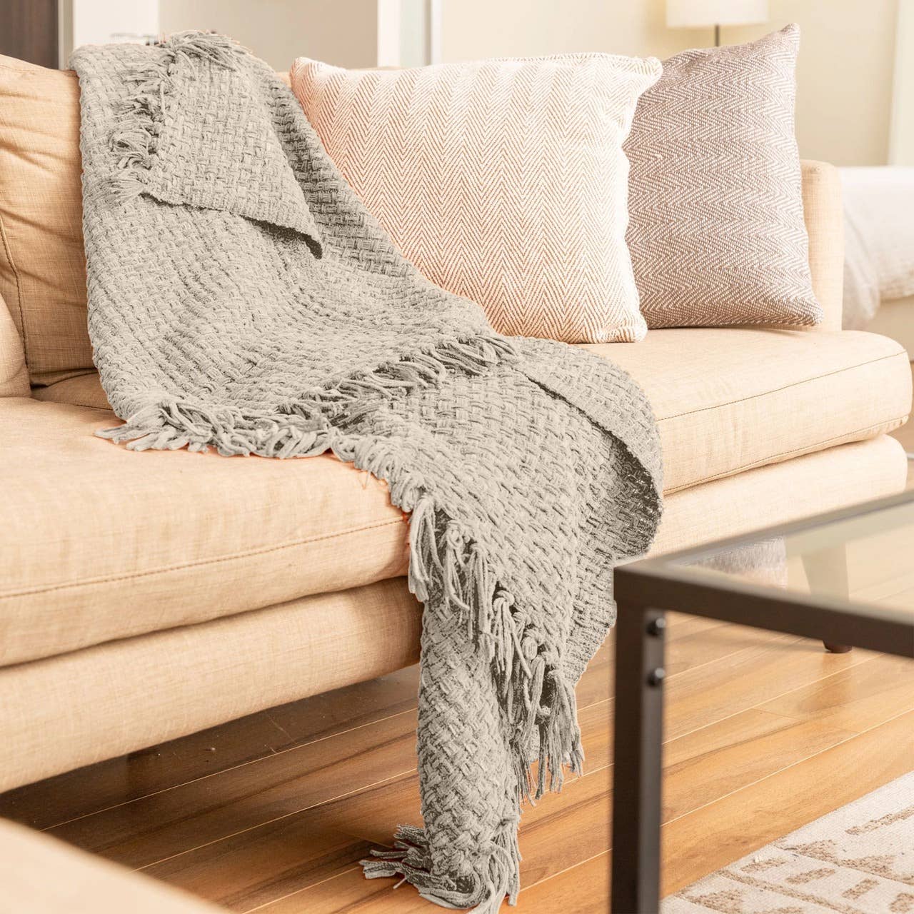 Thick and thin yarns weave a subtly textured throw that's sophisticated and soft to the touch with high-quality materials to ensure durability and maintain comfort. This throw works great on a cool night but can also be used to layer on a couch to give your living room an extra element of design.