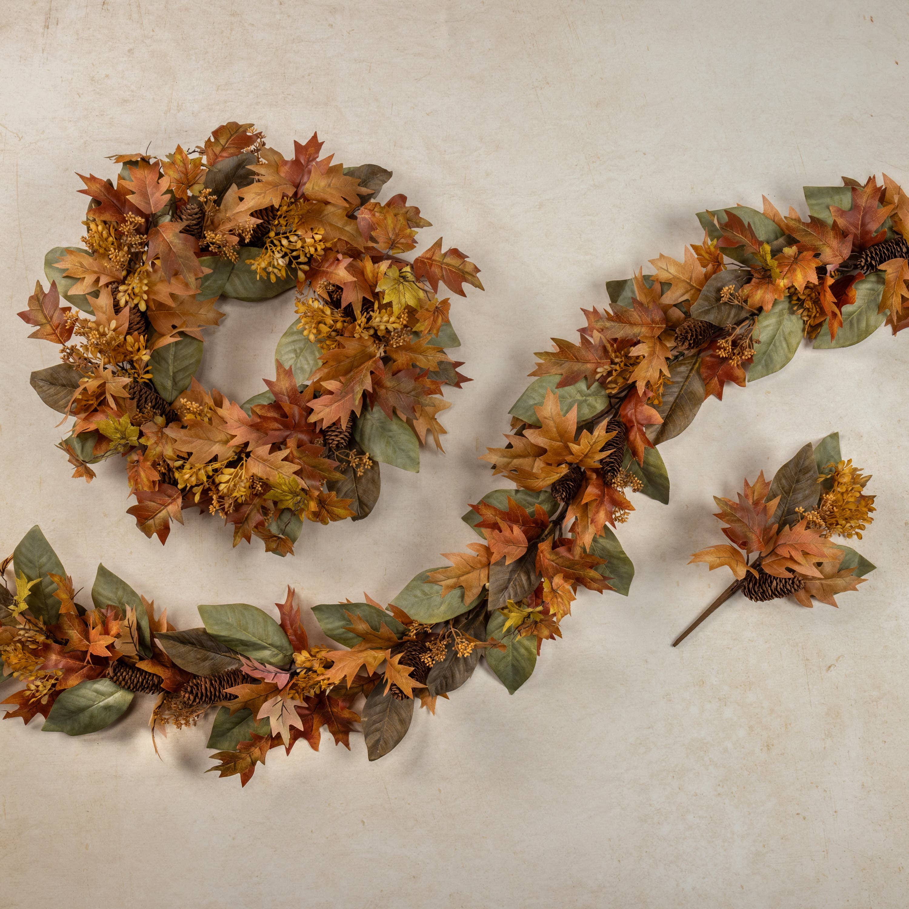 Elevate your seasonal decor with the 6' Harvest Mixed Leaf Garland from Josephine Interiors & Market. Measuring 72 inches in length, this garland features a rich blend of autumn leaves that bring natural warmth and texture to any room. Expertly crafted with attention to detail, it offers a sophisticated way to celebrate the fall season while enhancing your home’s ambiance. Designed to inspire creativity and lasting beauty, this garland reflects our dedication to quality and craftsmanship. Perfect for mantels, doorways, or tablescapes, it adds an inviting touch that complements your autumn styling. Thank you for choosing Josephine Interiors to enrich your living space.