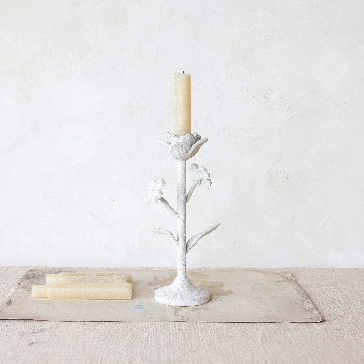 Coarse Cast Iron Flower Taper Holder w/ Flowers