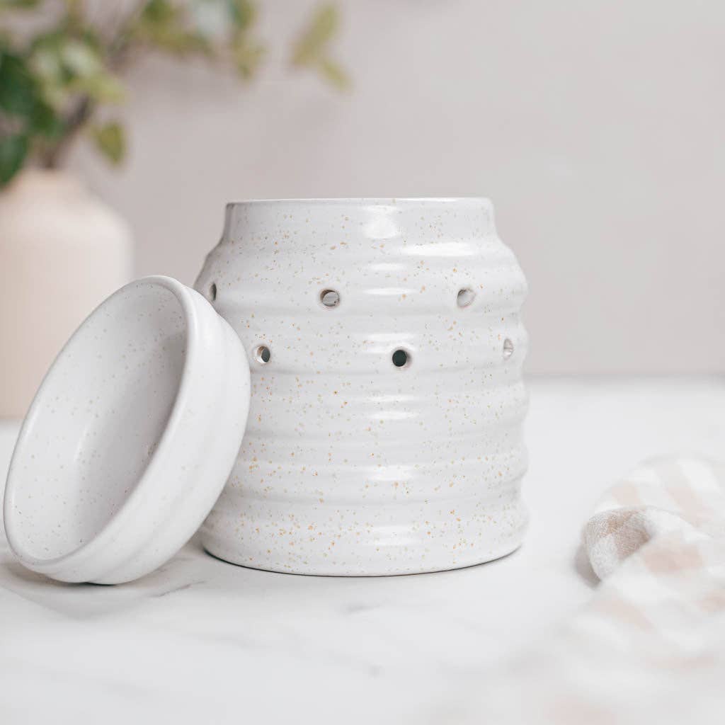 This classic fragrance/melt warmer features a speckled, farmhouse-inspired design with points of light on all sides for a classy, modern look.