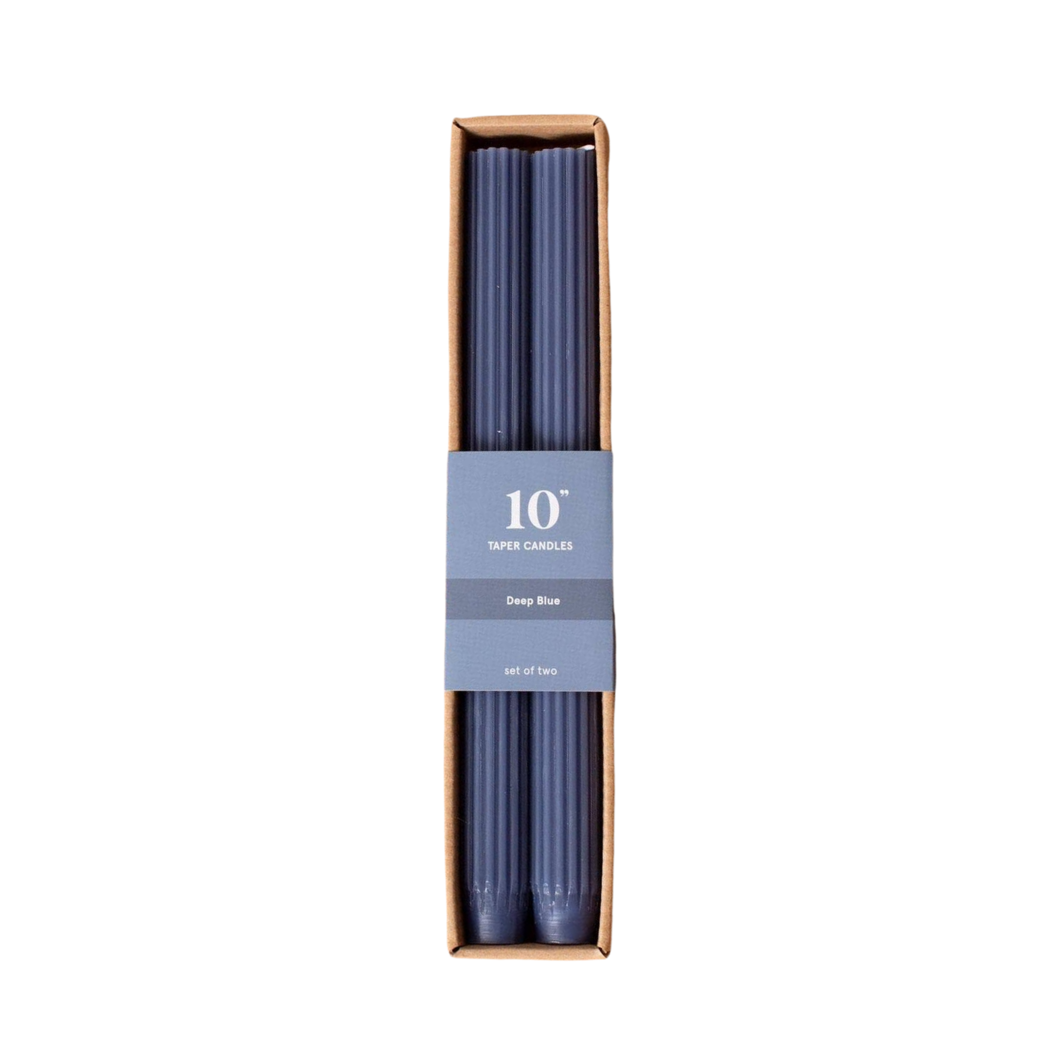 Deep Blue Ribbed Taper Candle 10 in. (Set of 2)