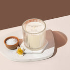 FRAGRANCE DETAILS: • Top Notes: Sea Salt, Jasmine • Middle Notes: Wood • Base Notes: Cream CANDLE SPECIFICATIONS: • Volume: 12 oz (258g) | Size: 3.5" x 3.5" x 3.5" • Burn Duration: 60+ hours • Includes Dust Cover with Scent Information • Wick: 100% Cotton, Lead and Zinc Free • Wax: Custom Soy-Based Blend | Vegan, Non-GMO, Kosher • Contains High-Quality Fragrance Oil | Gluten-Free, Phthalate-Free, Non-Toxic • Made in Pittsburgh, PA CARE INSTRUCTIONS: • Trim wick to 1/4" before each use • Burn until wax melts evenly to jar edges to prevent tunneling • Do not exceed 4 hours of continuous burn; extinguish with at least 1/2" wax remaining • Keep away from drafts, heat sources, children, and pets • Never leave lit candle unattended This 12 oz soy candle, housed in an elegant fluted ribbed jar, perfectly blends sophisticated design with calming aromas. It’s an excellent choice for enhancing self-care, elevating home or office décor, and making meaningful gifts for occasions like Mother's Day and seasonal celebrations.