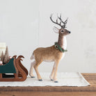 The Faux Fur Deer with Wreath stands 22 inches tall and measures 16 inches long by 8 inches wide, offering a lifelike yet elegant holiday decoration. Crafted from foam and covered in soft faux fur, this piece combines durability with a realistic texture that enhances any seasonal display. The attached wreath adds a festive touch, making it an ideal centerpiece for mantelpieces, entryways, or holiday tables. Its balanced proportions and expert craftsmanship bring a sophisticated charm to your décor, perfect for creating a warm and inviting atmosphere during the holiday season