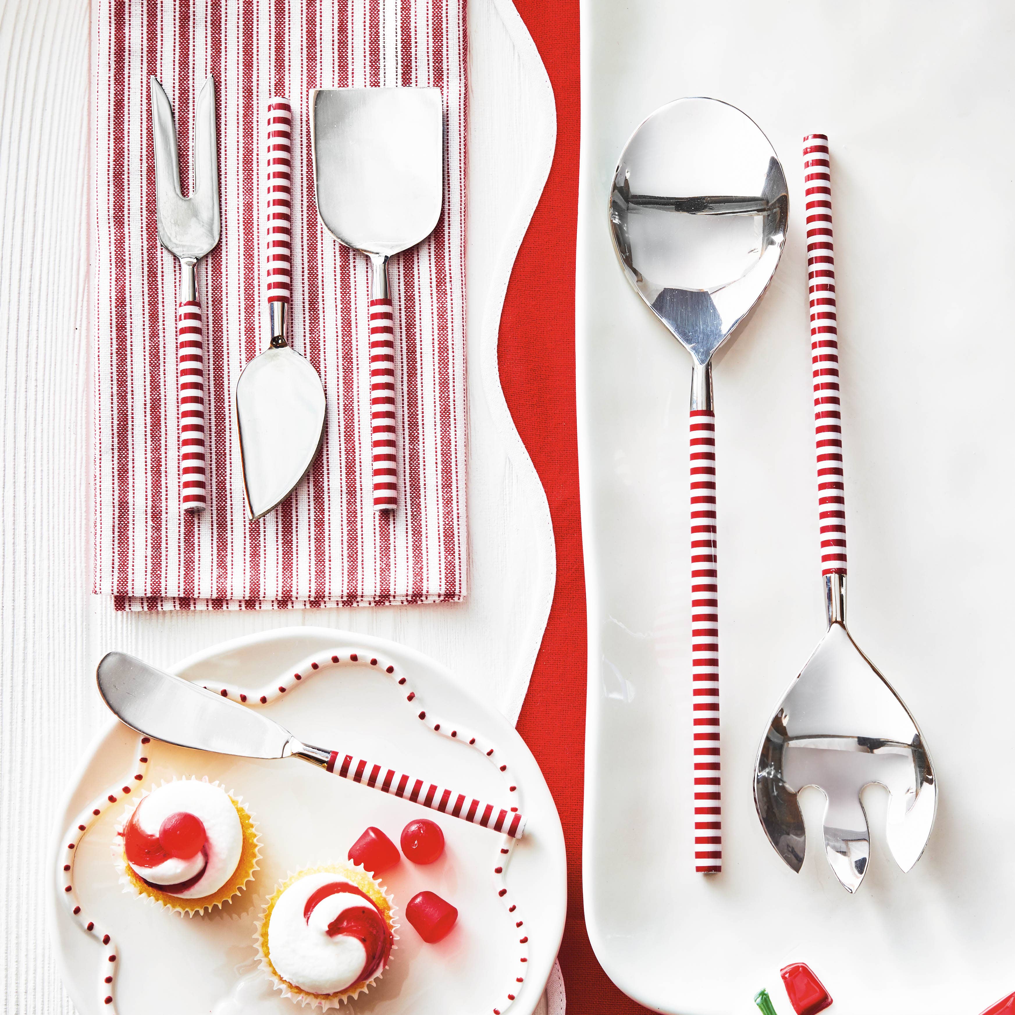 Add a touch of festive fun to your table with this Candy Stripe Serving Utensil Set. Made from stainless steel and enamel, this set features a classic red and white stripe design, perfect for serving up holiday treats.