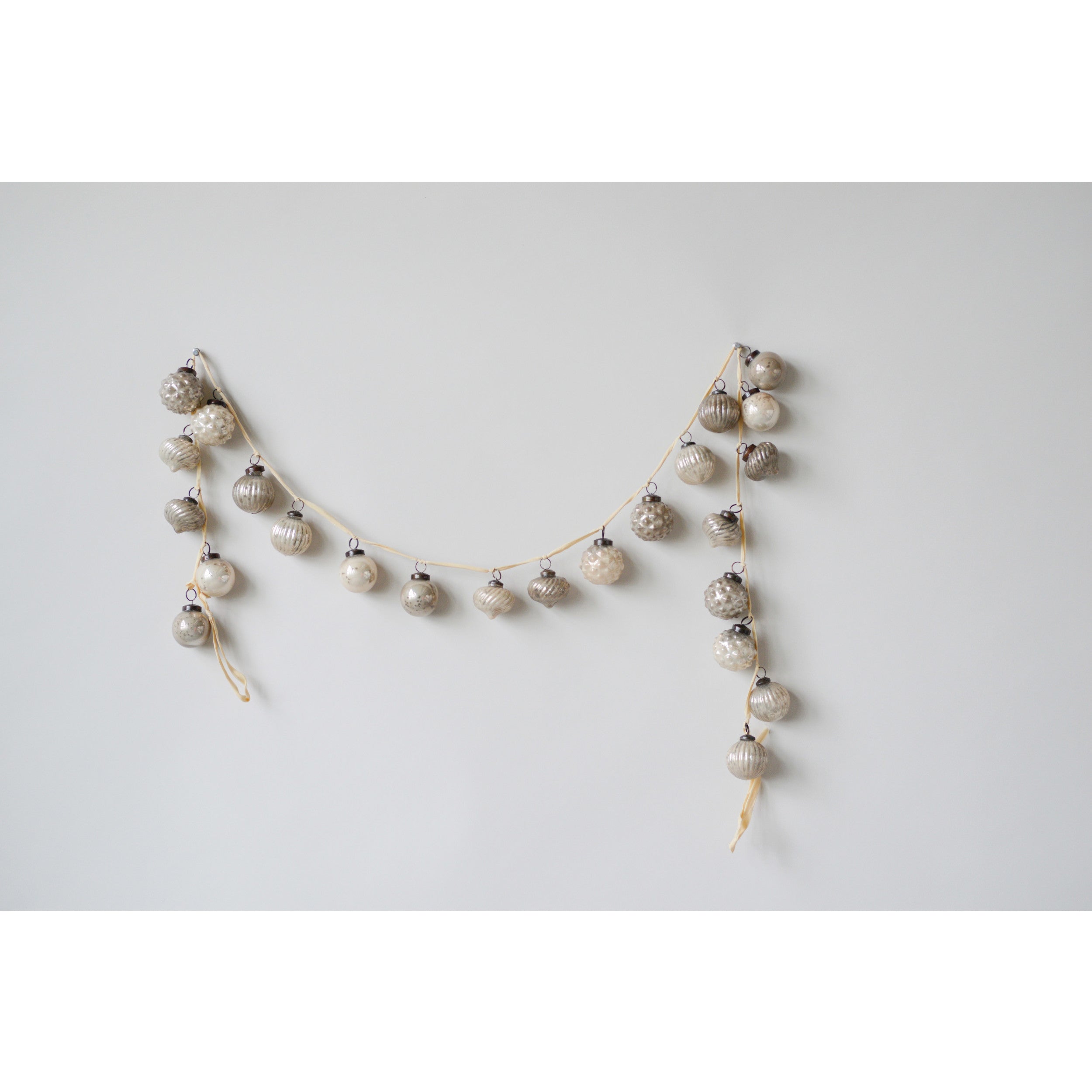 Enjoy the various designs of these glass ornaments. They are attached to a fabric string and create an antique garland to be envied by all. Lay it on a surface around larger items, add to a decorative piece filled with other items, hang on a fireplace mantel or in front of a window