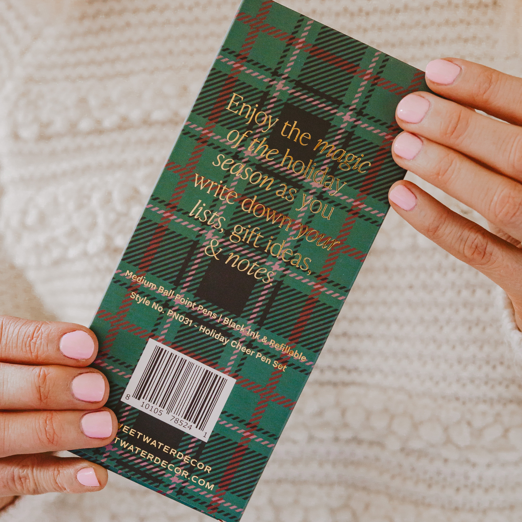 • Pen Colors: Green, Red, Blush Pink with Gold Accents