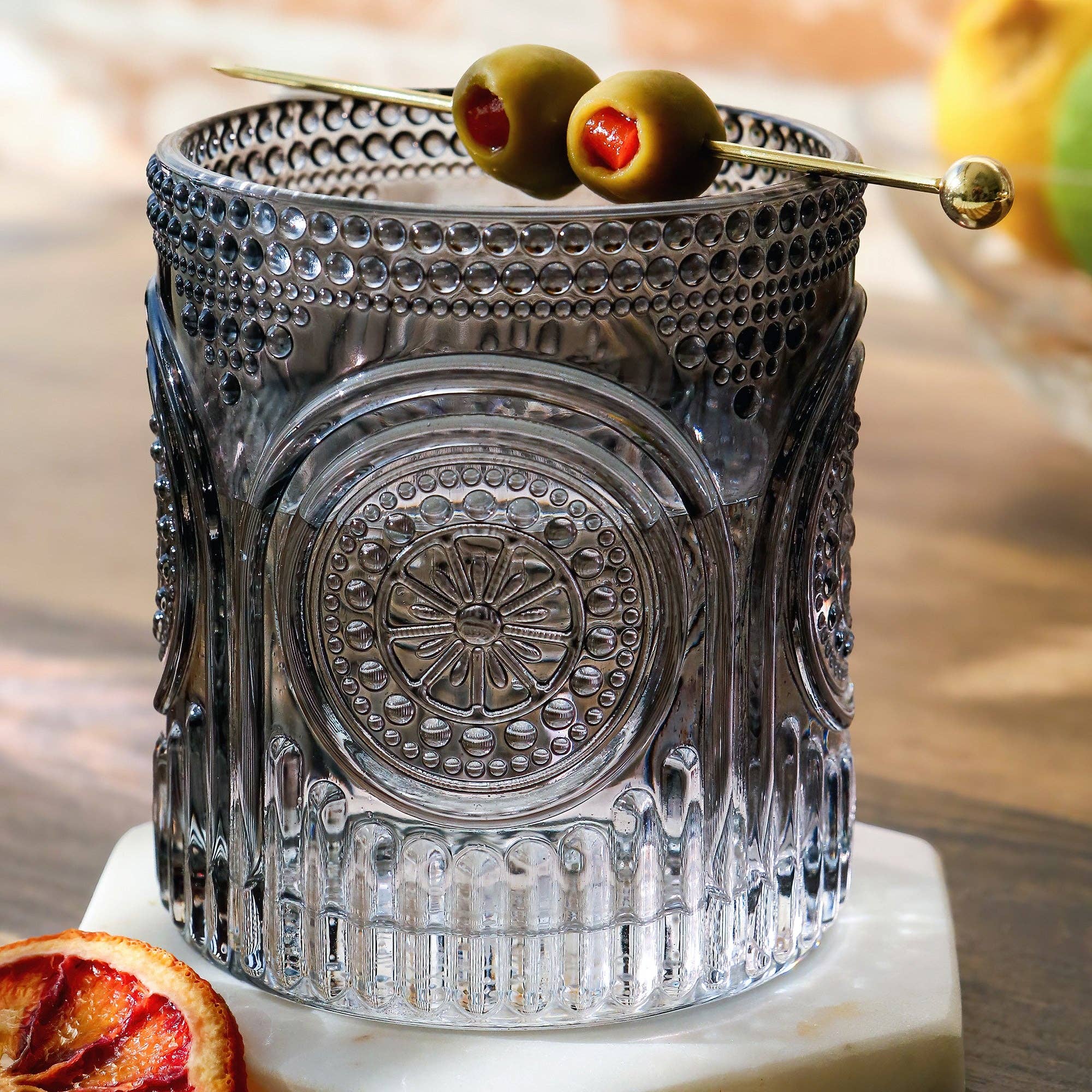 Are you a cocktail curator with a penchant for elevated drinkware? Look no further than Kate Aspen's Retro Arch Floral Vintage Drinkware in Smoke Grey. Inspired by retro aesthetics but reimagined for modern sensibilities, these glasses are a testament to timeless design. Crafted with meticulous attention to detail and using only the highest quality materials, they're built to withstand the test of time. From poolside parties to bridal brunches, these glasses add a touch of vintage charm to any occasion. We draw inspiration from the craftsmanship and quality materials of the past, infusing our designs with a sense of nostalgia and refinement.