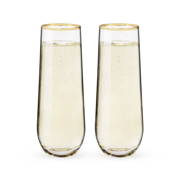 Elevate your sparkling wine experience with this stemless champagne flute, each featuring a sleek modern silhouette accented by a refined gilded gold rim. Designed to bring a touch of luxury and subtle shimmer to your table setting, these 10 oz glasses are ideal for celebrating special moments or enjoying a tranquil evening with your favorite vintages. Crafted from clear glass to showcase the bubbles and color of your champagne, they combine contemporary style with timeless elegance. For lasting beauty and optimal care, hand washing is recommended. Perfect for both festive occasions and intimate gatherings.