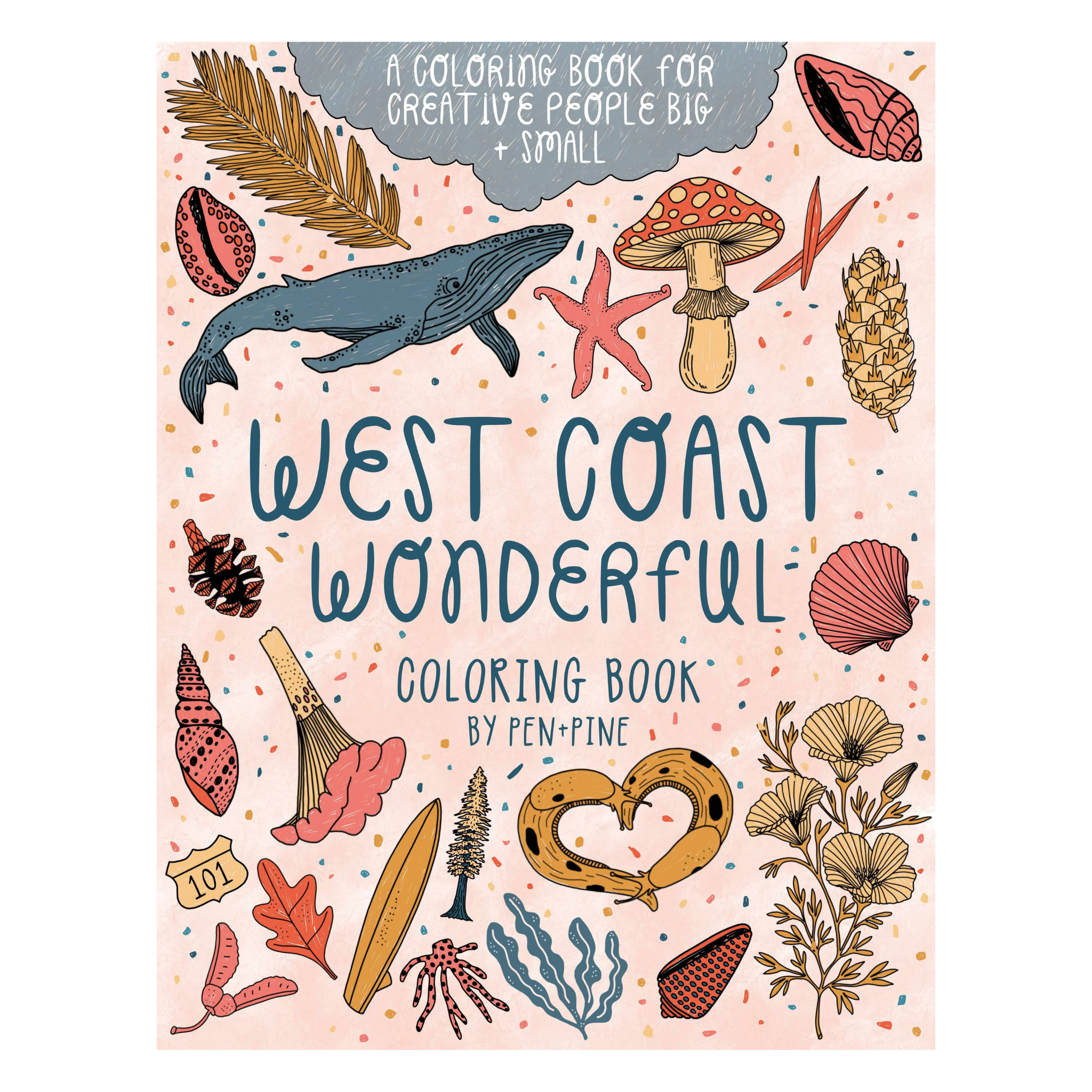 West Coast Wonderful is a coloring book for expressing your creativity, no matter your age. Each page is beautifully hand-drawn for the best coloring experience.