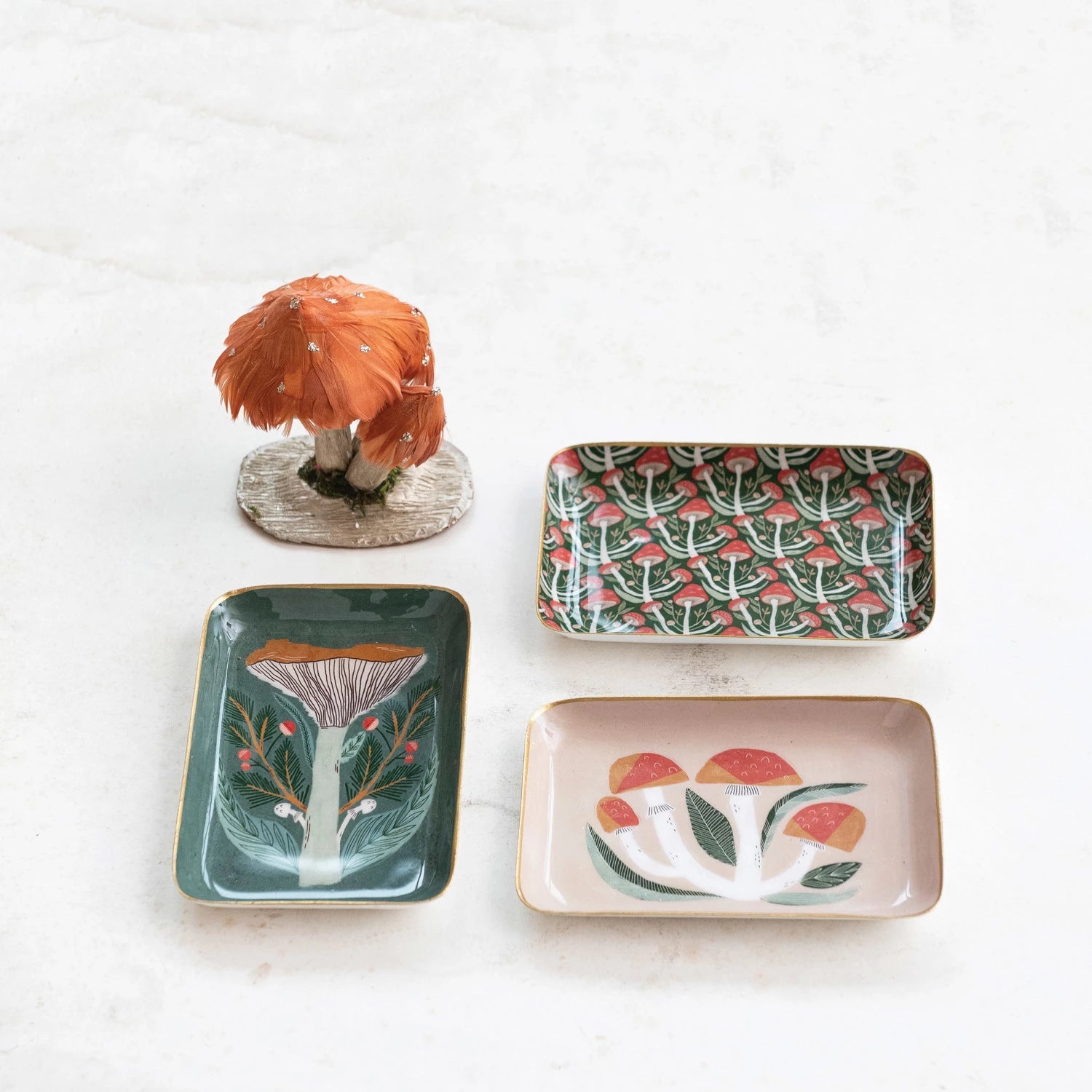Enameled Stainless Steel Tray w/ Mushrooms & Gold Rim