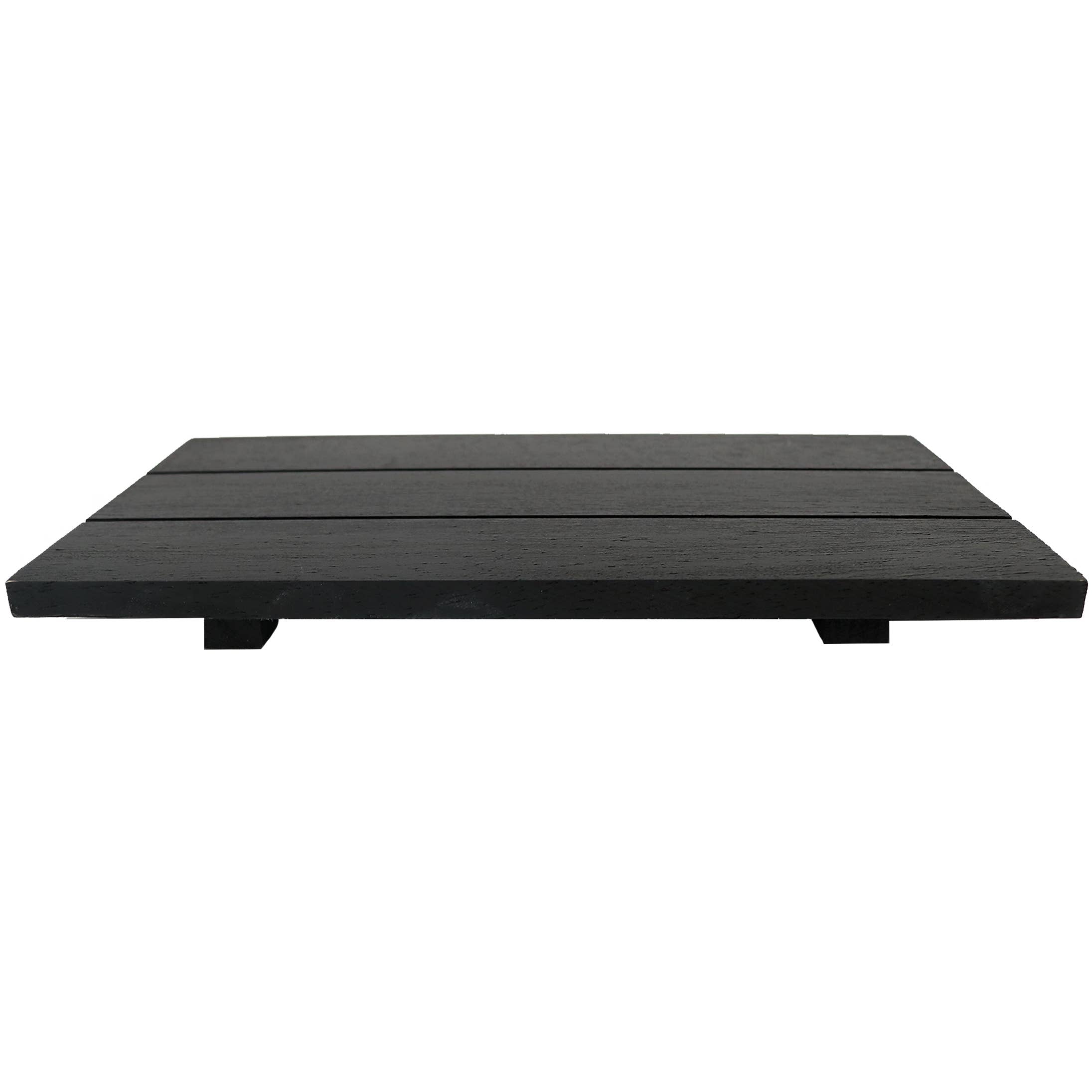 DETAILS: • Size: 9 x 4.75 x 0.8" • Material: Paulownia Wood • Color: Black Wood Tray • Waterproof: A Coating Was Added But Do Not Let Water Sit In Tray • Designed in the USA, Imported • Easy to Clean - Use a Soft Damp Cloth or Rinse with Water and Pat Dry • Not Suitable for Long-term Water Immersion or Using with Rough Material to Clean or it will Break the Water Resistance • Not Intended for Food Use • Not Microwave Safe or Dishwasher Safe