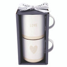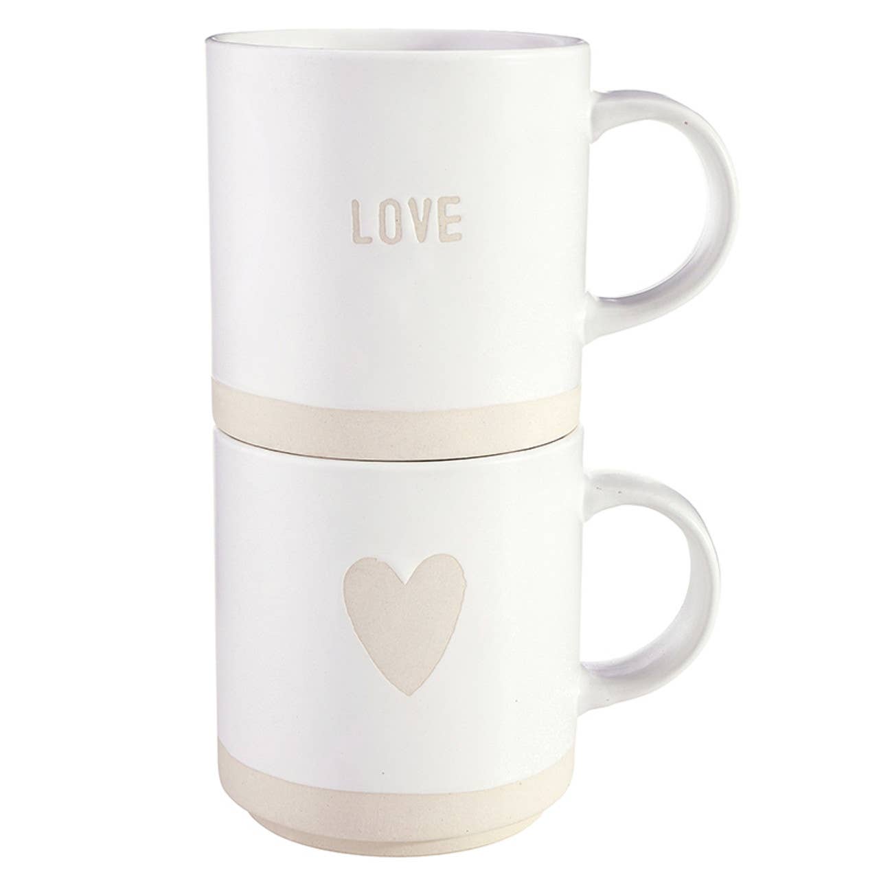 Whether you're starting your morning coffee, ending the evening with tea, or any beverage in between, these stackable mugs are the perfect choice. Sleek, dipped design keeps these modern while fun phrasing adds a witty touch. •Matte glaze finish dipped in natural stoneware clay •2 piece set 12oz