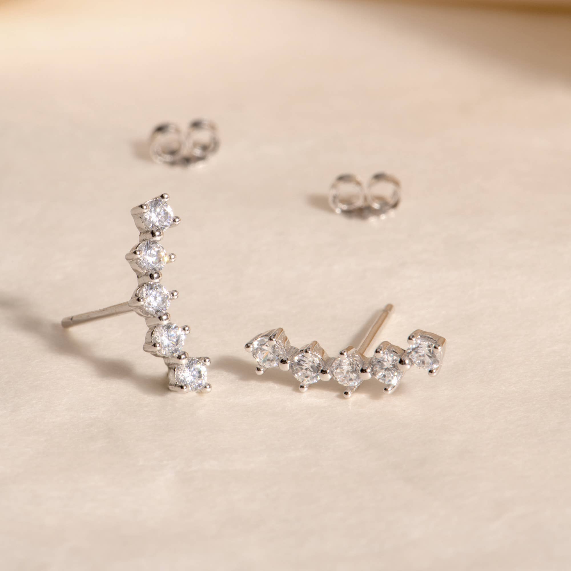 5 Pronged Cubic Stone Climber Earrings • Featuring a pair of climber earrings, dainty enough for every day and beautiful for special occasions • Base Material: High Quality Solid 925 Sterling Silver • Finish: 18K Gold or Platinum • Nickel Free •