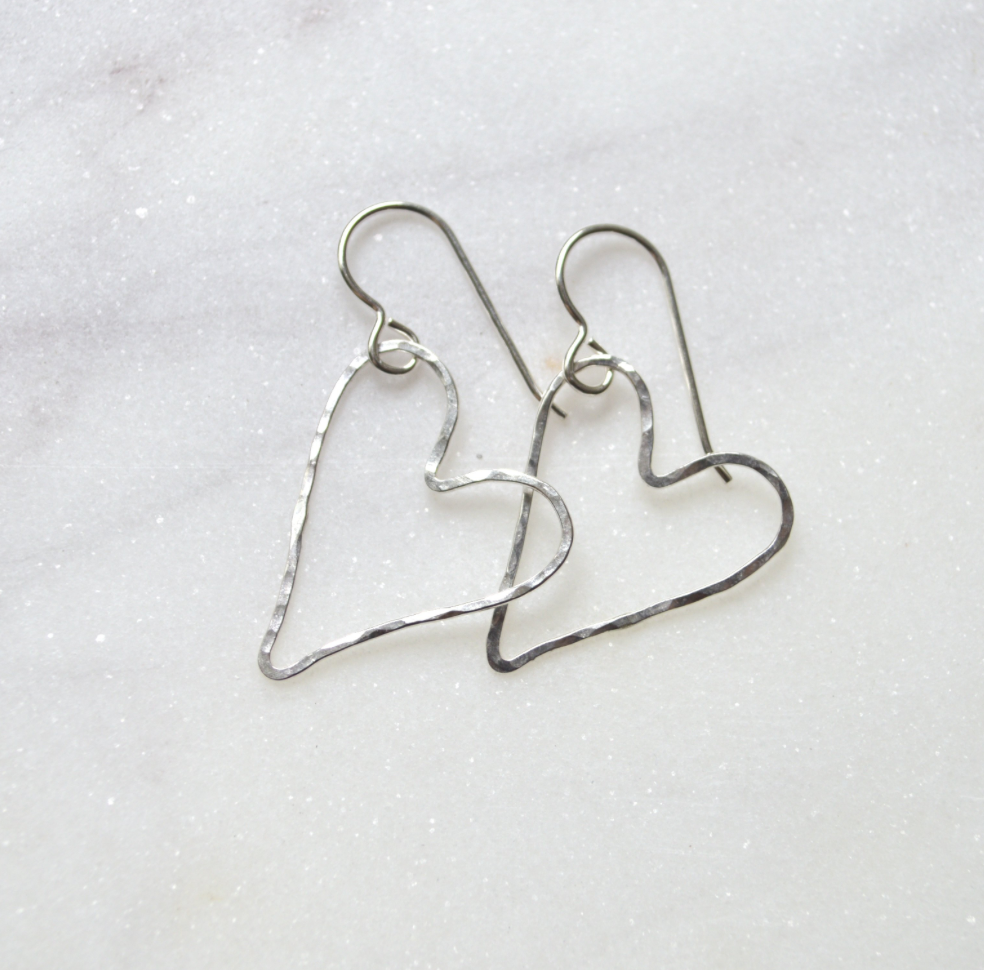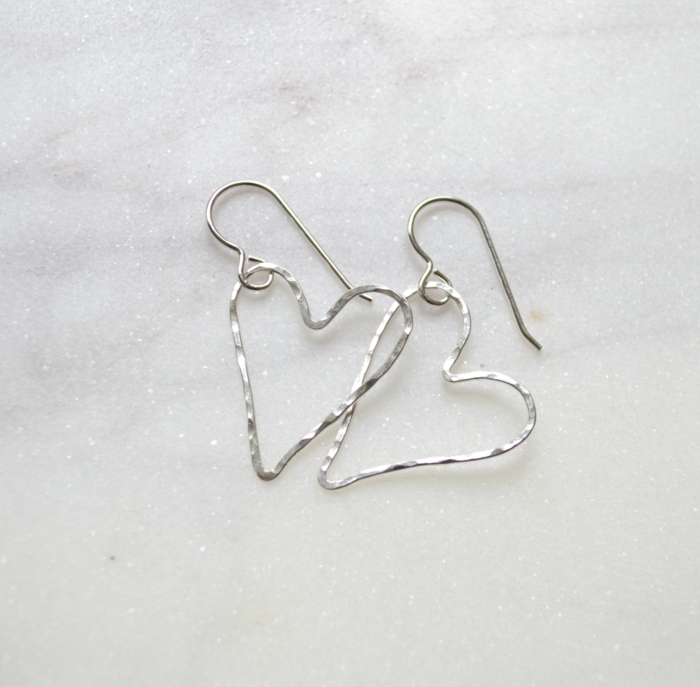 Delicate yet striking, these gold heart earrings capture attention through their artisanal hammered finish. Crafted from quality 20g wire, each piece measures roughly 1" in length and 3/4" in width—the perfect size for everyday elegance without overwhelming your features. The handmade nature of these earrings means subtle variations add to their charm and authenticity. An ideal choice for those seeking understated sophistication with genuine craftsmanship.