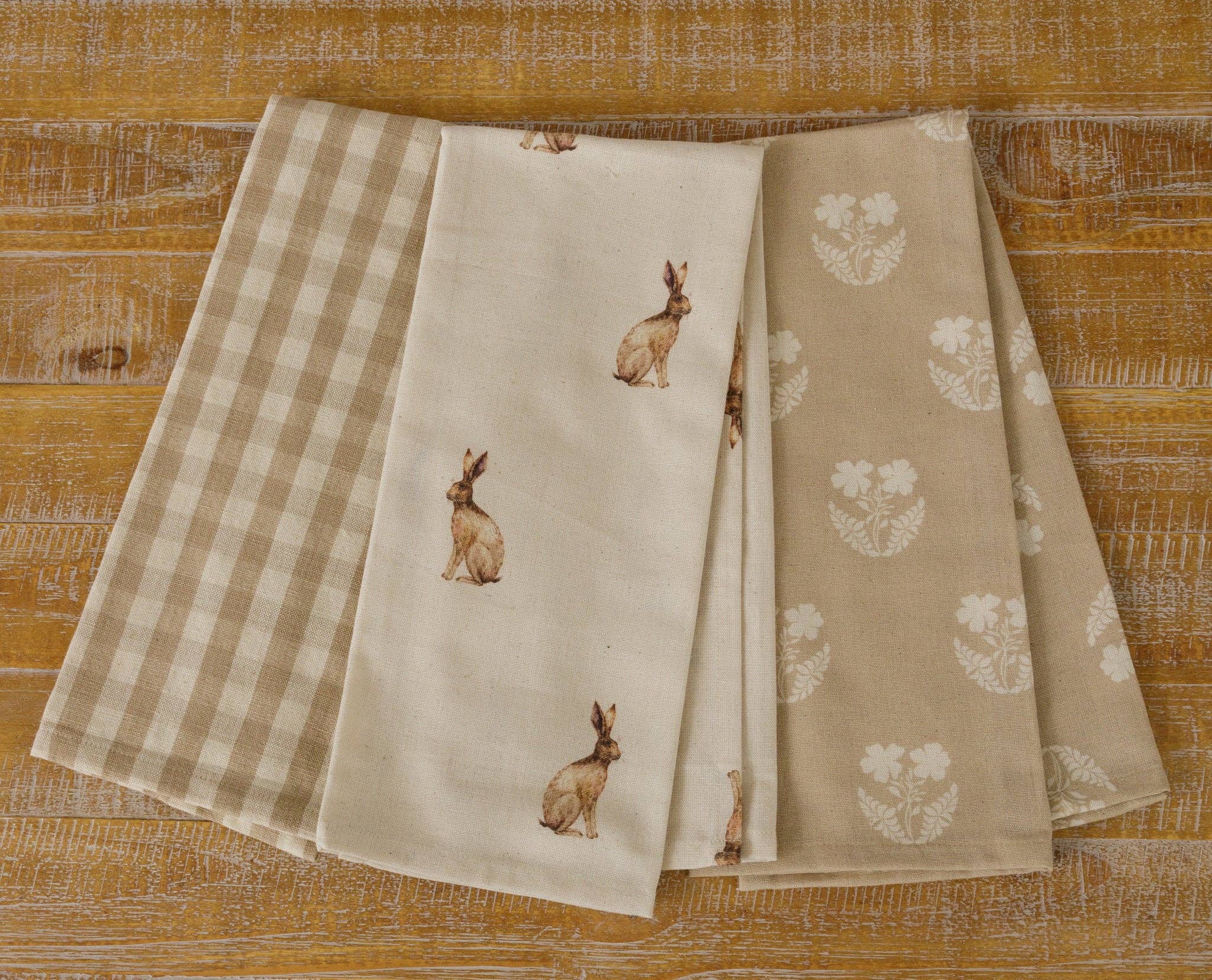 Tea Towels - Rabbit And Tan And Linen Check