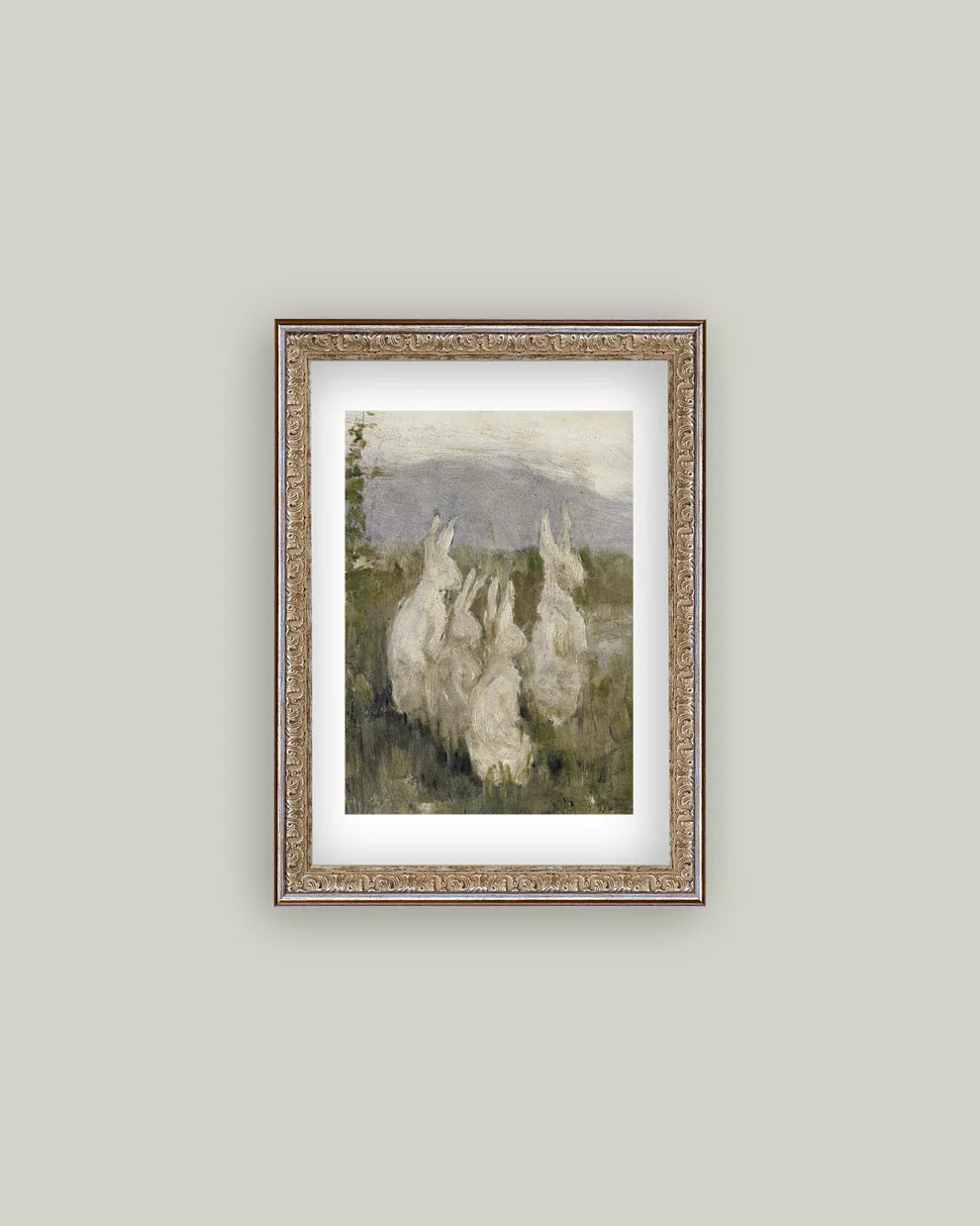 This vintage landscape artwork, “Rabbits In A Field,” is meticulously printed on raw canvas to enhance its texture and visual depth. Set within an antique frame, it offers an authentic and timeless aesthetic that complements both classic and contemporary interiors. The natural canvas finish highlights fine details, while the curated framing adds character and historical charm. Ideal for collectors and enthusiasts of vintage art, this piece brings warmth and sophistication to any space, serving as a lasting tribute to pastoral beauty and craftsmanship.