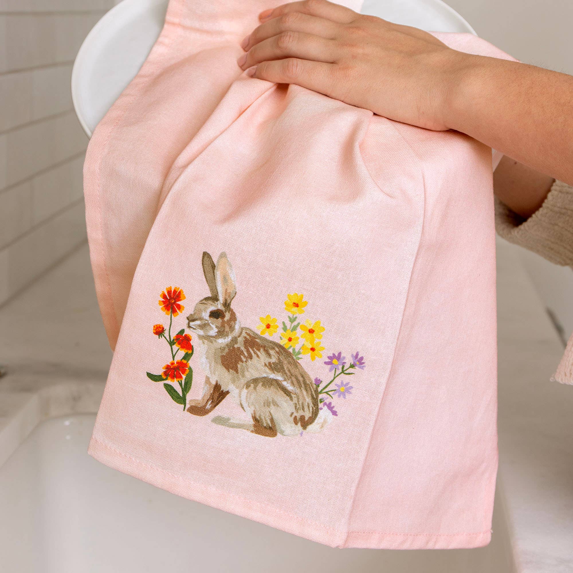 Bring the beauty of wildflowers and the whimsy of bunnies into your kitchen with our Wildflower Bunny Kitchen Towel. This delightful towel showcases hand-illustrated wildflowers and an adorable rabbit, creating a fresh and vibrant addition to your kitchen decor. Ideal for animal or nature lovers and those who enjoy a touch of spring indoors, this 100% cotton kitchen staple makes a great gift or Easter basket addition! Format | Single kitchen towel Features | Soft and absorbent 100% cotton fabric, Hang Tight™ Loop to securely display Size | 18" x 27.5" Product Type | Kitchen Tea Towel Title | Wildflower Bunny Kitchen Towel