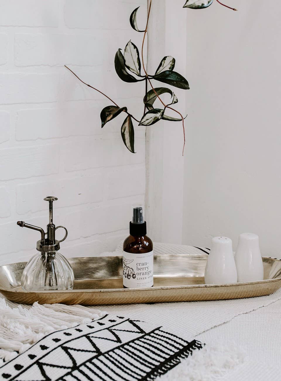 Relaxing at home to the sound of the fireplace crackling and soft holiday harmonies. Tart cranberry and zesty citrus counterbalance a blend of warm spices to create this quintessential seasonal scent. Features: Our 4 oz natural linen sprays are made to create a luxurious experience, safe to spray wherever you please! Use on linens, skin, or as a room spray; this fine mist is sure to delight the senses. Ingredients: Water, Soya Morpholinium Ethosulfate, Essential oil infused fragrance oils