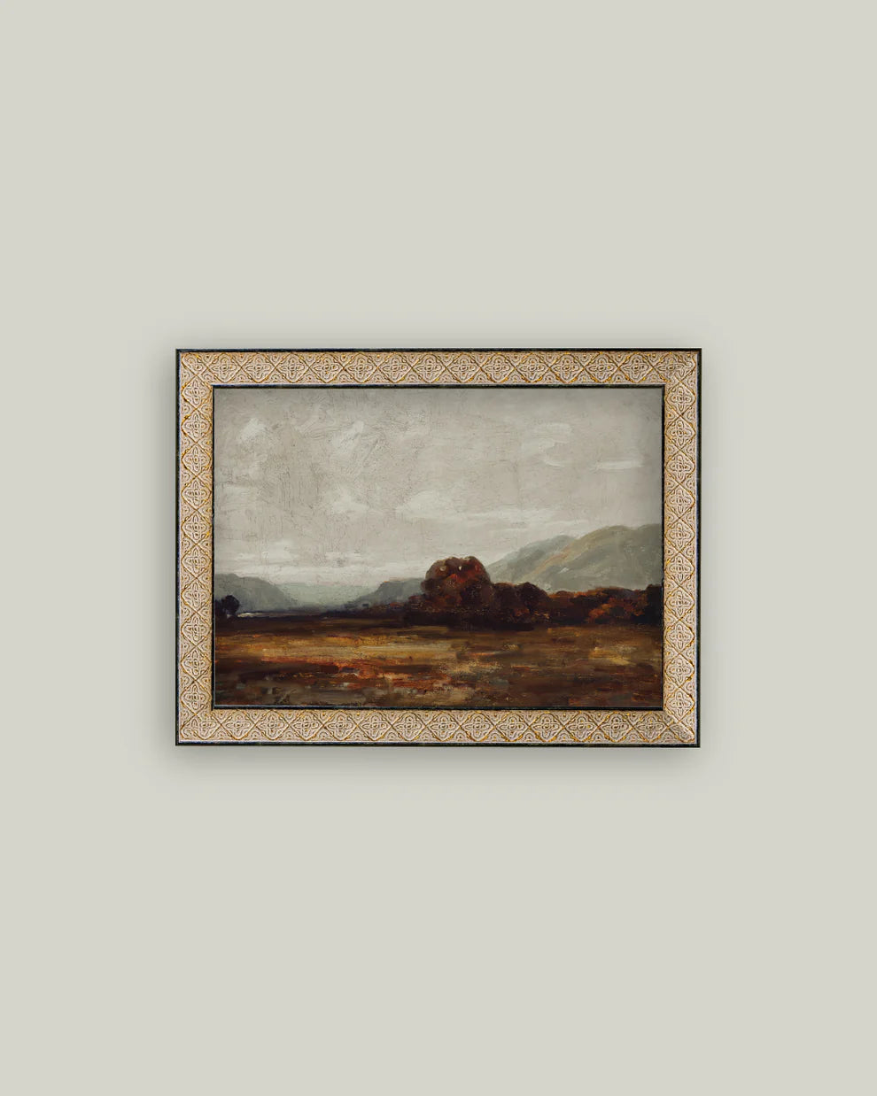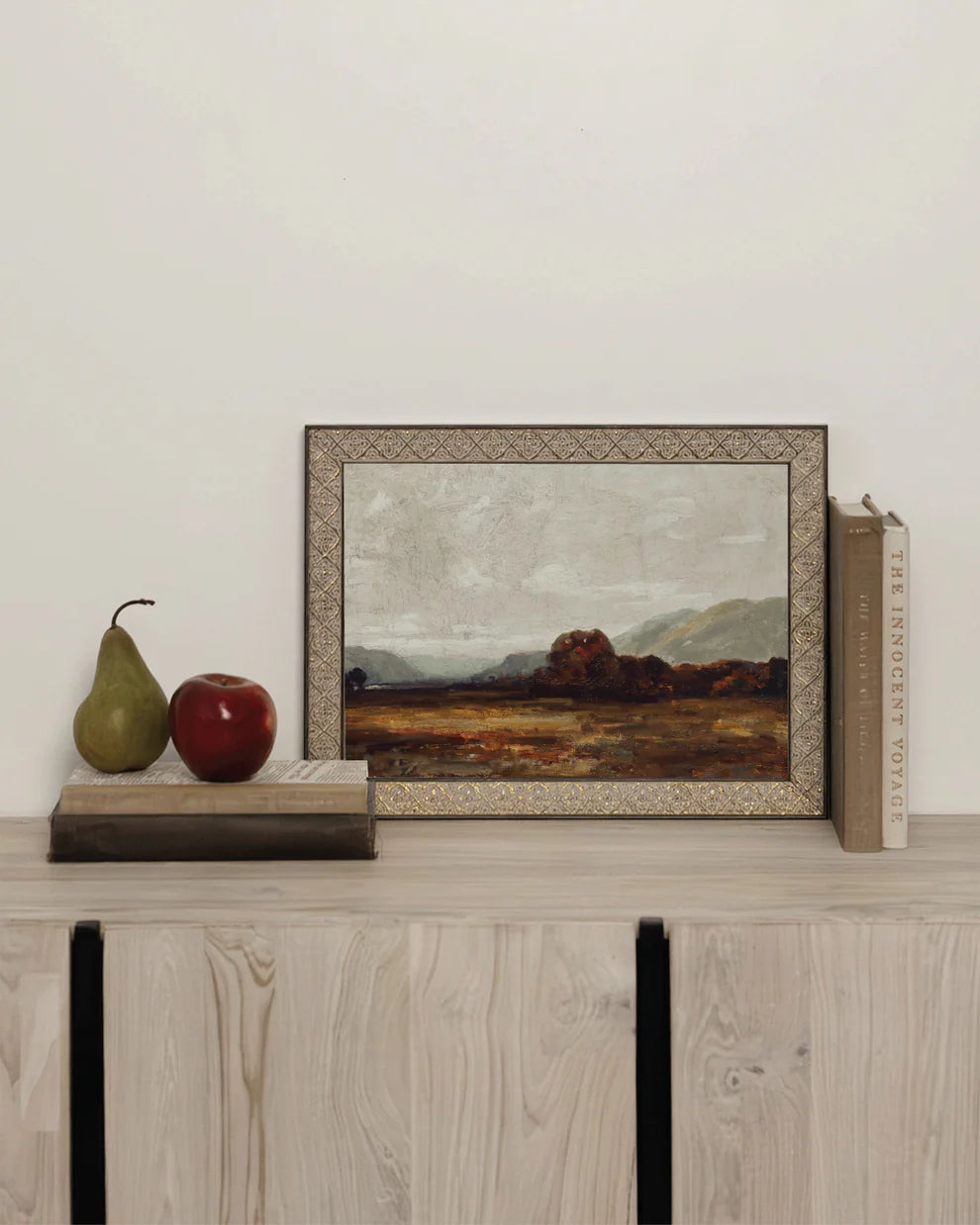 The Fall Mountain Art Print captures the serene beauty of autumn with a vintage landscape printed on raw canvas, enhancing its natural texture and depth. Carefully mounted within an antique frame, this piece evokes a timeless atmosphere that complements a variety of interior styles. Its expert craftsmanship and authentic design make it a sophisticated addition to any space, bringing warmth and nostalgic charm while showcasing quality artistry and attention to detail. Perfect for those seeking a refined, classic aesthetic in their home or office decor.