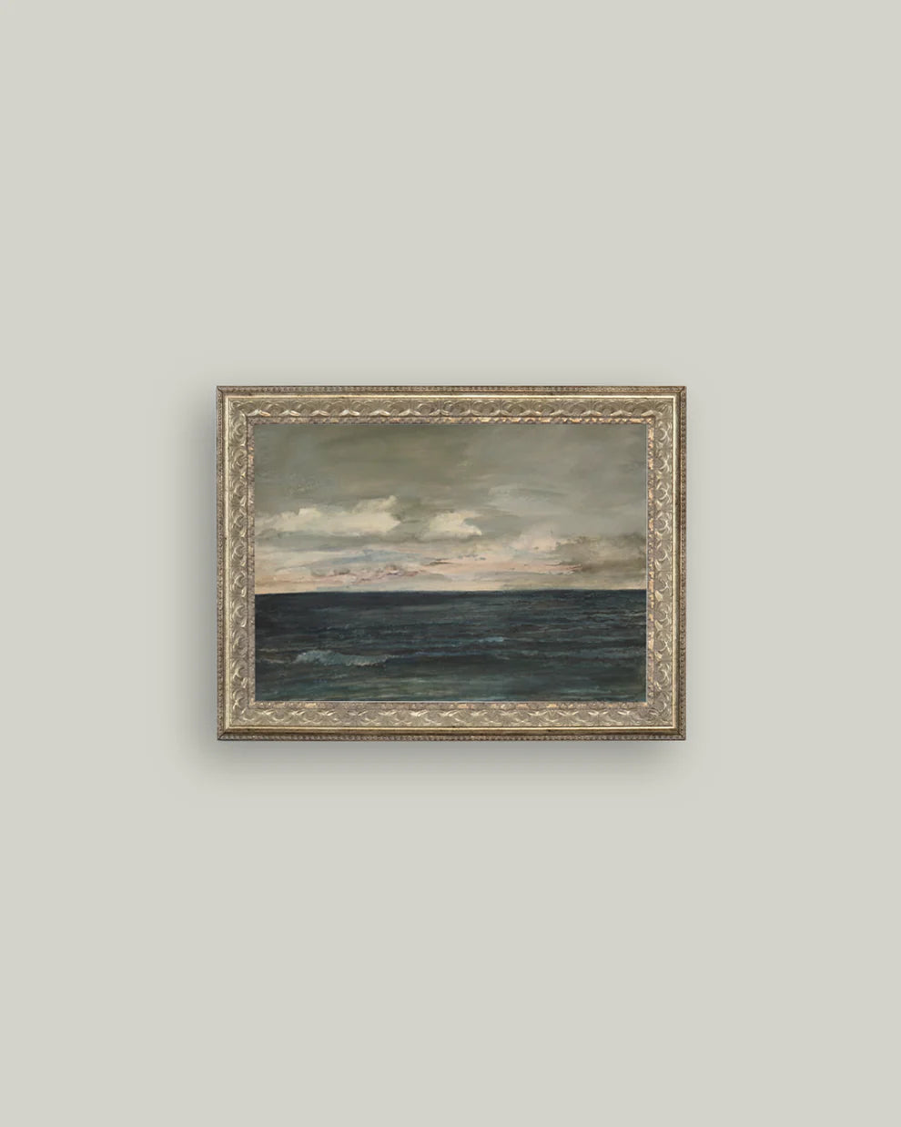 This vintage landscape, titled "Ocean View," is expertly printed on raw canvas to preserve its authentic texture and depth. Carefully encased in an antique frame, it offers a timeless appeal that complements both classic and contemporary interiors. The natural grain of the canvas enhances the artwork’s richness, while the aged patina of the frame adds a sense of history and elegance, making it a refined choice for collectors and art enthusiasts seeking a genuine vintage aesthetic. This piece seamlessly blends art and craftsmanship to elevate any space with understated sophistication.