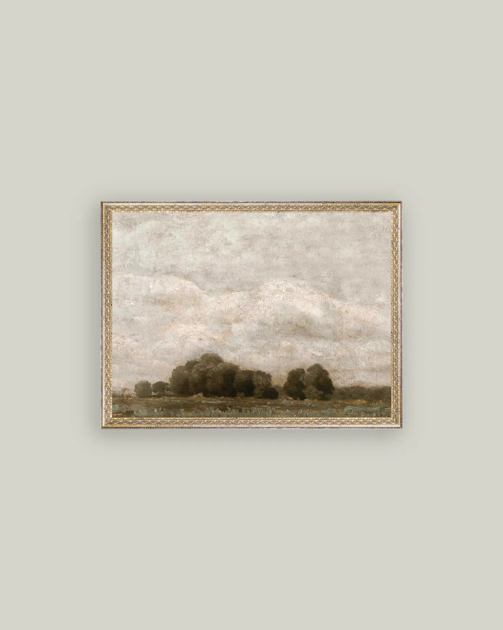 This vintage landscape, titled "Tree and Cloud," is meticulously printed on raw canvas, highlighting the natural texture to enhance its artistic depth. Framed in a carefully selected antique frame, it conveys an authentic, timeless aesthetic that complements both classic and contemporary interiors. The combination of raw canvas and vintage framing ensures durability and an enduring presence, making it a distinguished piece for collectors and art enthusiasts alike. This artwork adds a subtle yet sophisticated touch to any space, inviting viewers to appreciate its serene atmosphere rooted in traditional craftsmanship.