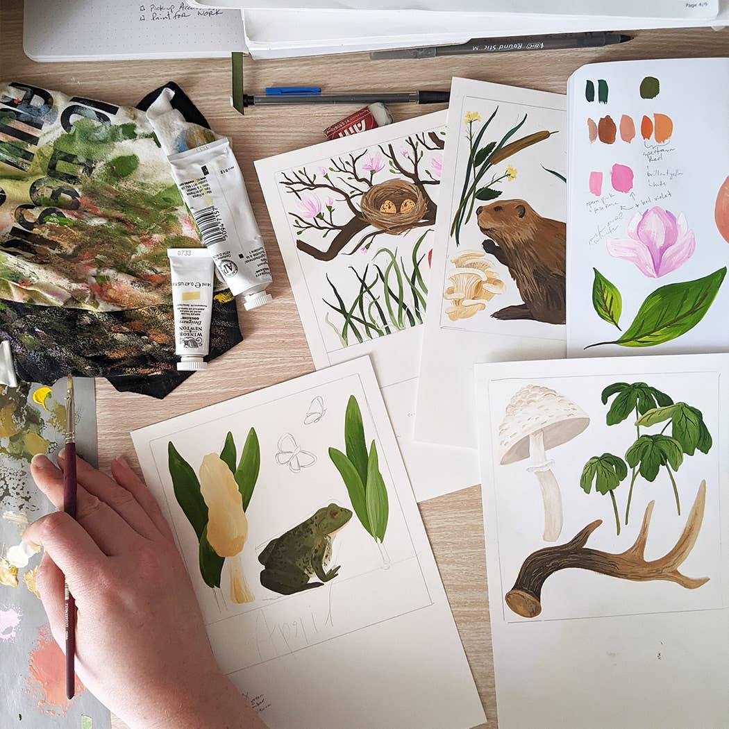 Our Flora and Fauna puzzle makes the perfect gift for plant and animal lovers or anyone who loves exploring nature, botany and the great outdoors! It features a variety of beautifully hand-painted animals, flowers and plants such as mushrooms, blackberries, coneflowers, chamomile, a turtle, fox, raccoon (this little feller is our personal fave), beaver, frog, snake, chipmunk, and lizard. You'll even spot a few butterflies and a prickly pear cactus! Each species' name is hand-lettered—making this puzzle a fun and educational activity for kids and adults.