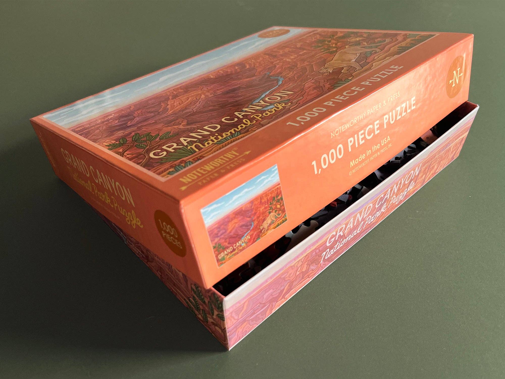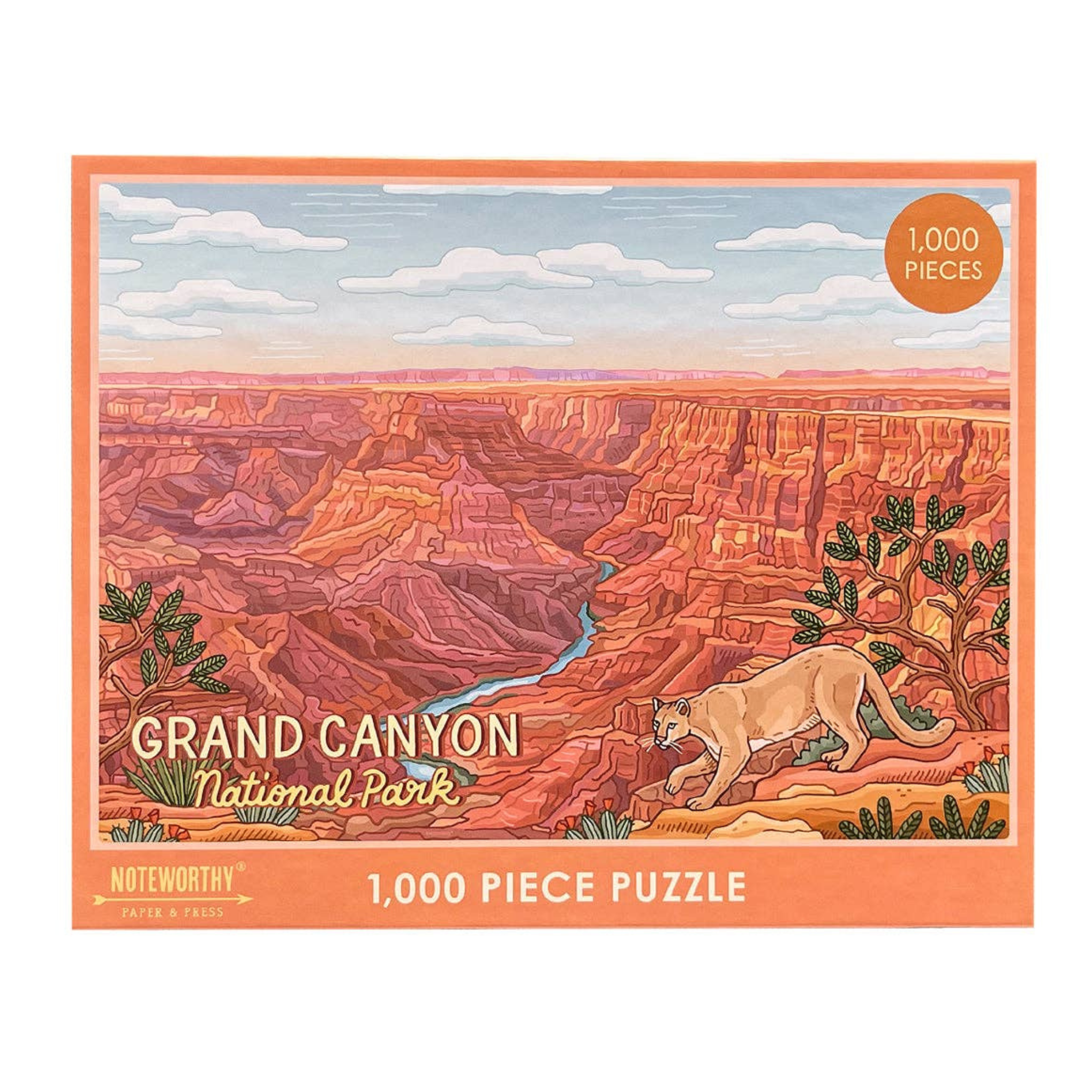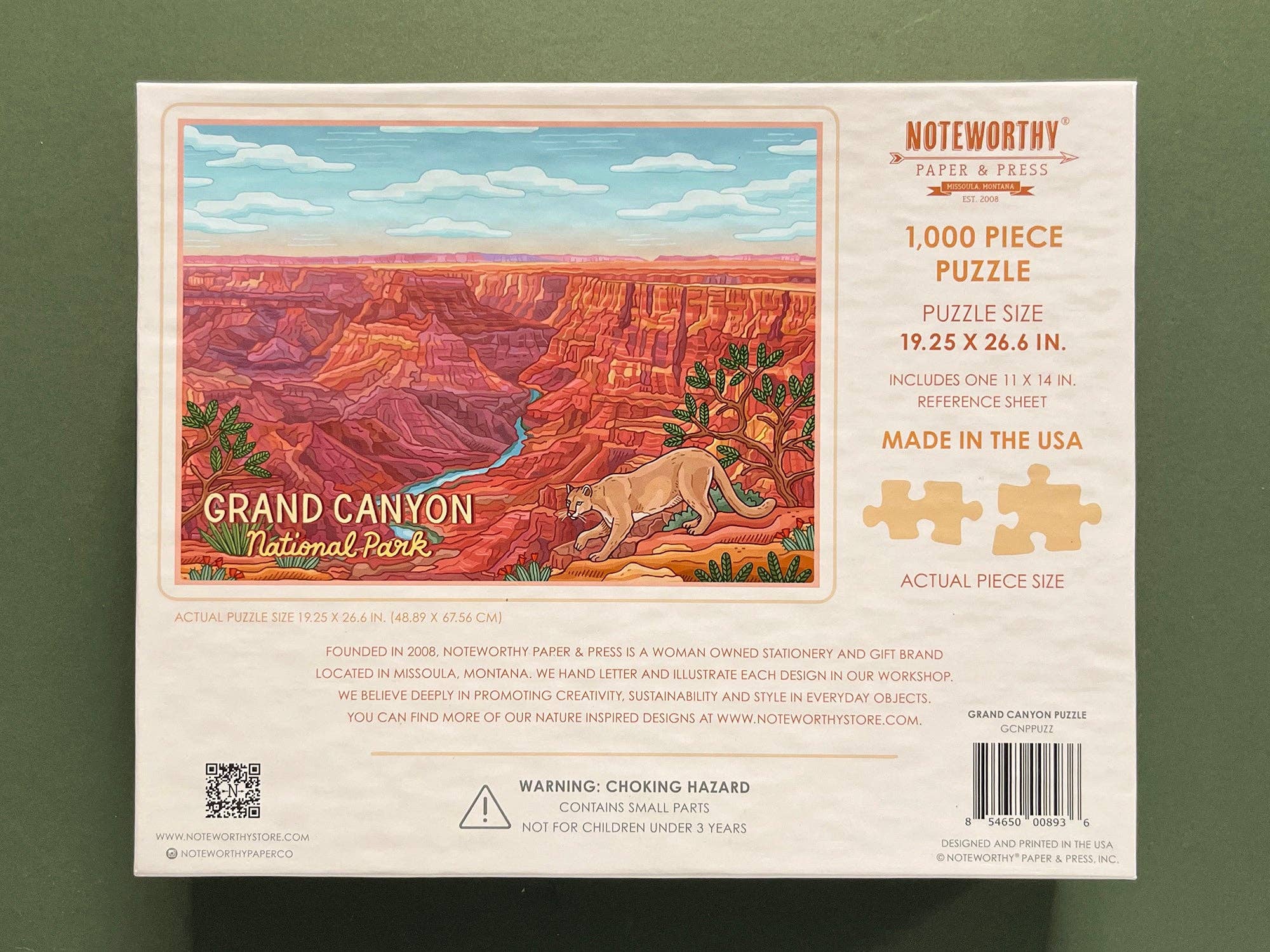 Discover the breathtaking beauty of Grand Canyon National Park with this stunning 1,000-piece puzzle. Measuring 19.5" x 26.6" when completed, it offers an immersive experience that captures the majestic layers and vibrant hues of one of America's most iconic natural wonders. Each piece has been carefully crafted to deliver crisp details and vibrant colors that bring the canyon's dramatic landscape to life. This premium puzzle comes complete with an 11" x 14" puzzle image insert, making it easy to reference while you work. The sturdy shrink-wrapped packaging ensures your puzzle arrives in perfect condition and makes an excellent gift for nature lovers, travel enthusiasts, and puzzle aficionados alike. Proudly made in the U.S.A., this high-quality puzzle combines durability with American craftsmanship. Whether you're looking for a relaxing solo activity or a rewarding family project, this Grand Canyon puzzle delivers hours of engaging entertainment and a finished masterpiece worthy of display.