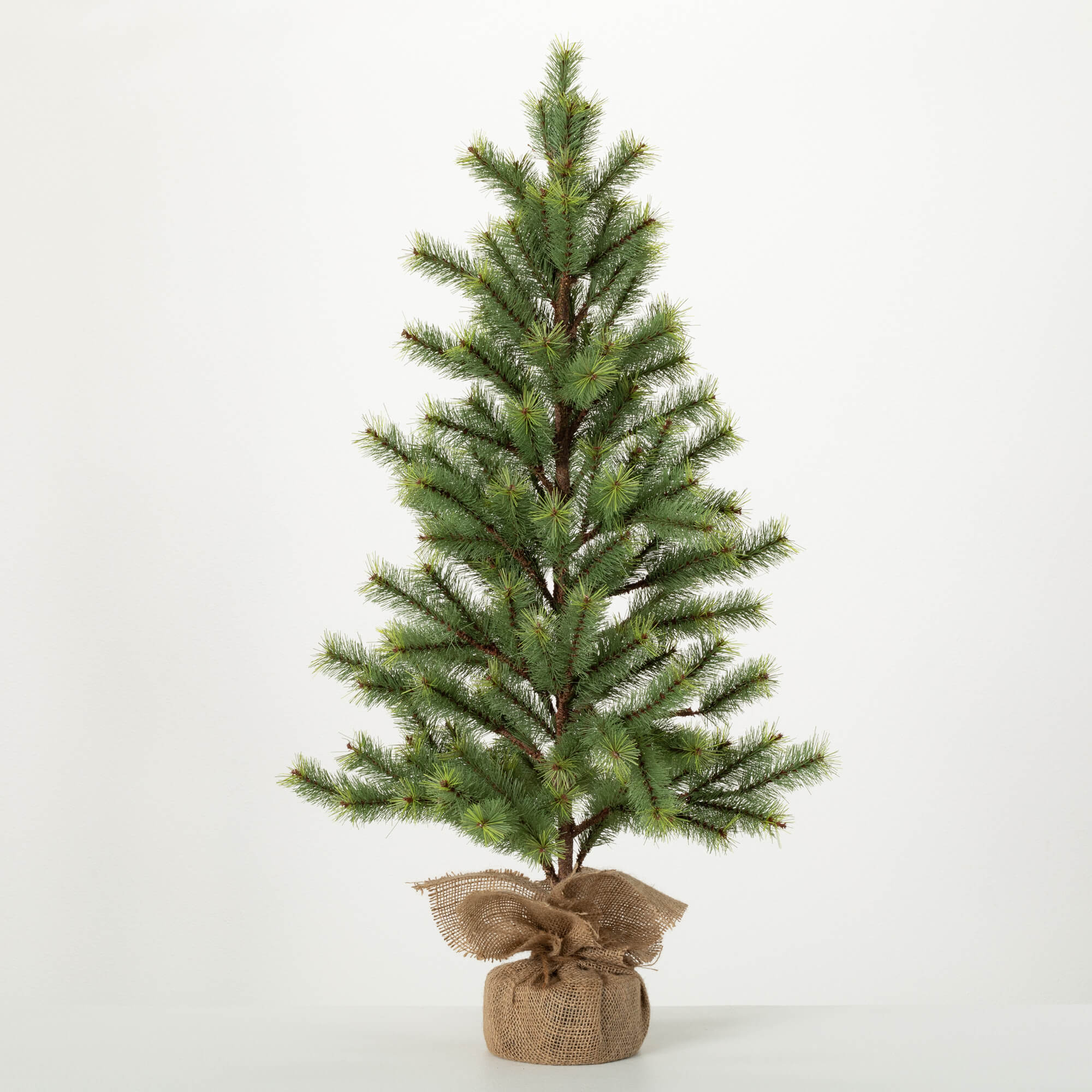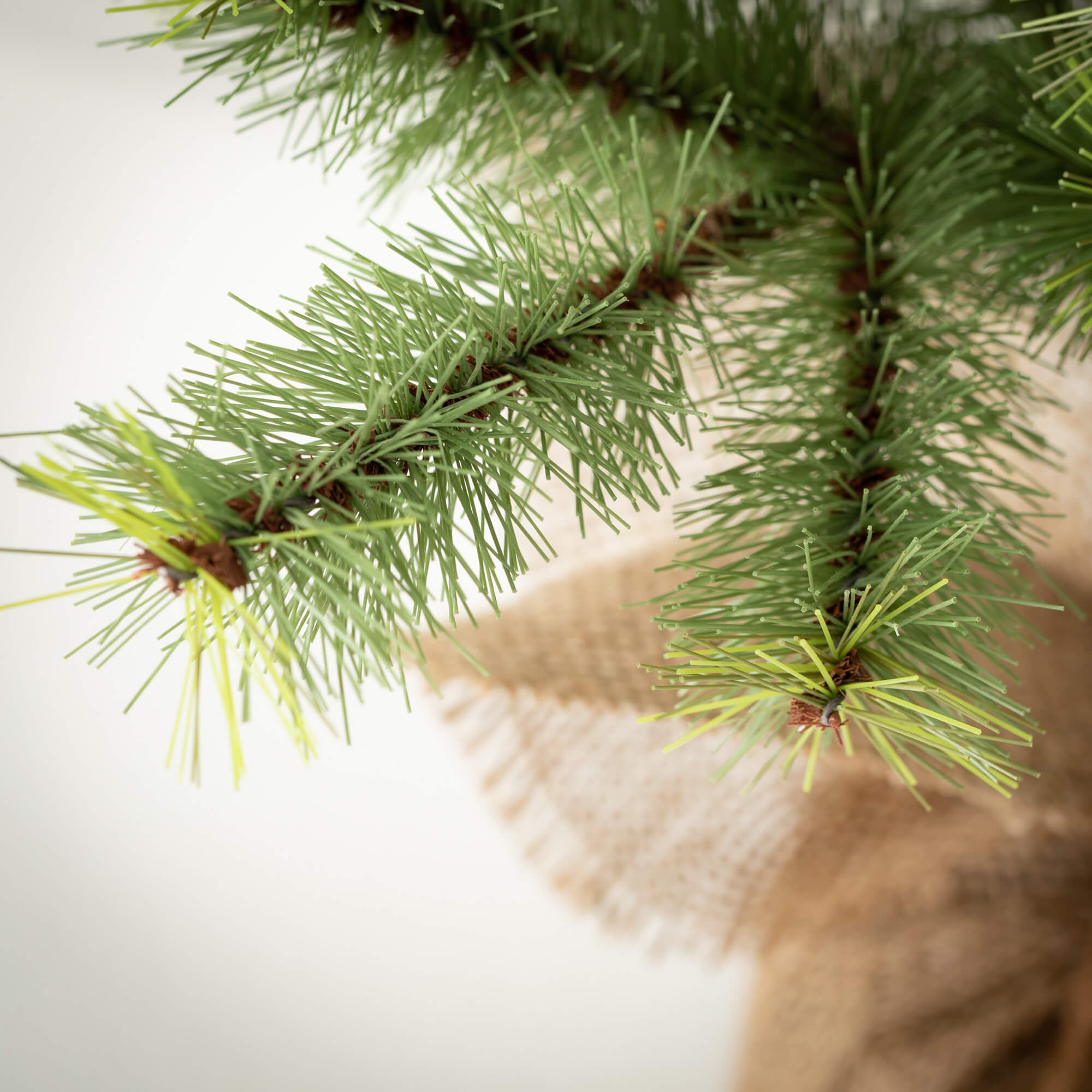 Bring a touch of nature into your home this Holiday season with this maintenance-free Sullivans-exclusive pine tree. Featuring vibrant green pine branches, this 3' tree comes wrapped in burlap and ready to display
