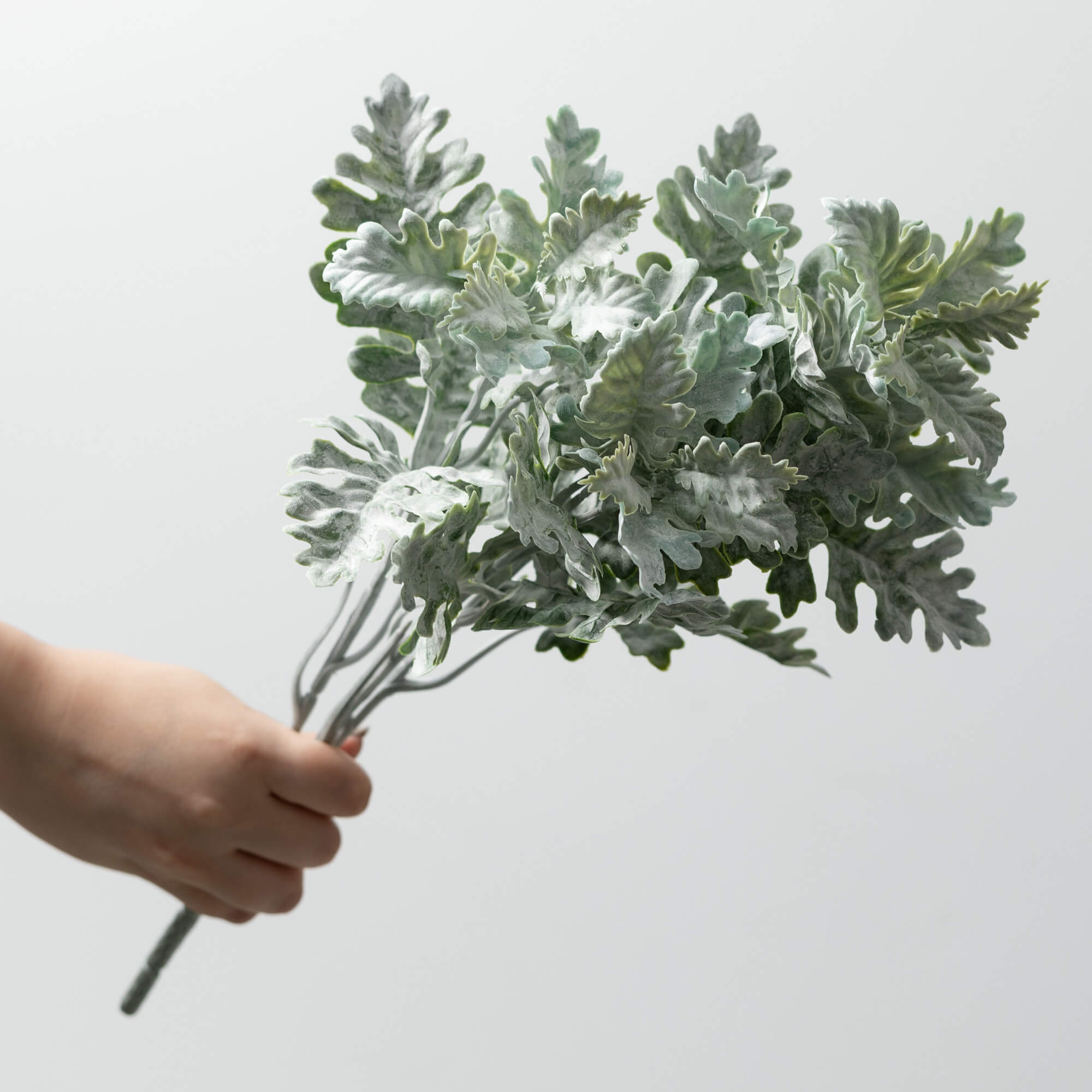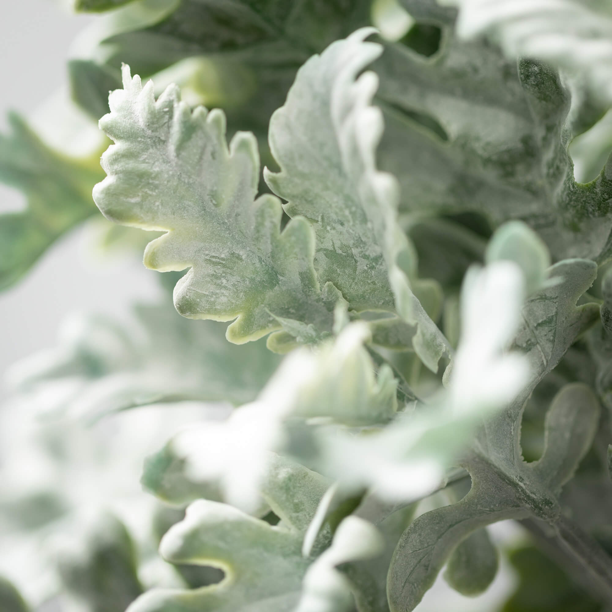 Bring the beauty of nature indoors with the Dusty Miller Bush from Sullivans. This faux greenery piece is more than just a pretty face - it's a low-maintenance way to add a lush, organic touch to any space. Whether you're styling a bookshelf, mantel, or entryway, this realistic-looking bush will elevate your decor with its soft, silvery-gray foliage. The best part? You'll never have to worry about watering, pruning, or replacing this maintenance-free marvel. Simply fluff the branches and let the Dusty Miller Bush do its thing, effortlessly enhancing your space with its natural elegance. Breathe new life into your home with this versatile, eye-catching accent that's as stylish as it is simple to care for.