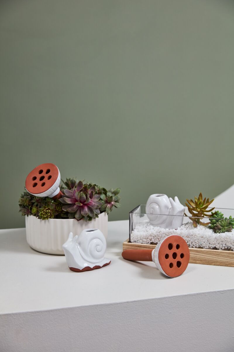 Give home decor & plants a boost from the terracotta Whimsy Watering Collection. Perfect for plant shops or home & gift stores, these delightful, helpful additions to plant pots are best used with plants that have been well watered but enjoy high moisture levels.