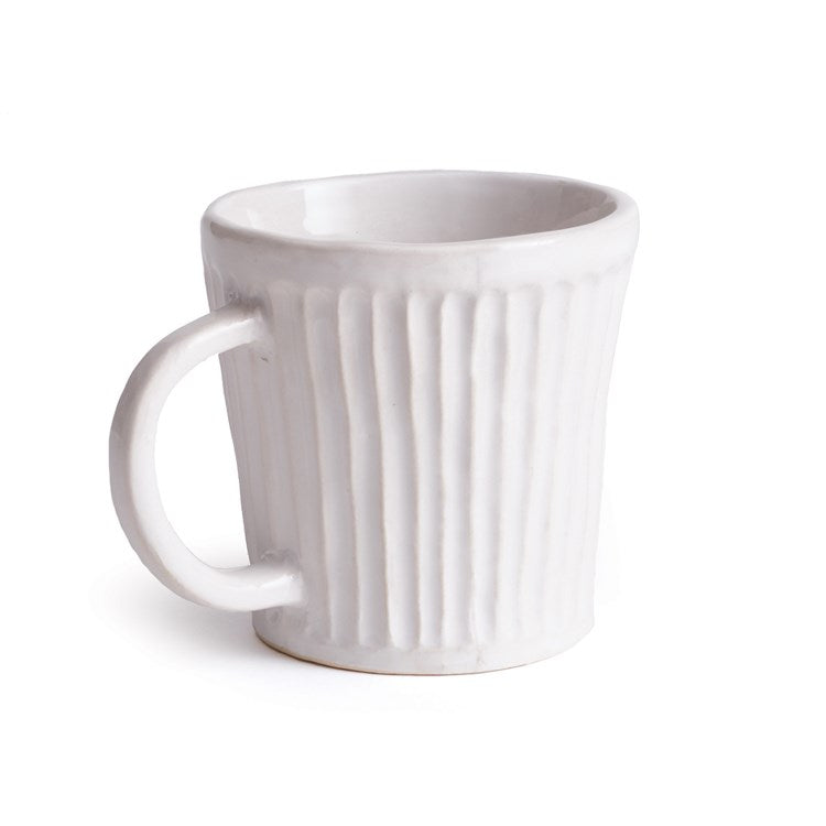 The Daphne Mug features an organically shaped design in a warm creamy white that complements the rustic charm of a Farmhouse kitchen. Crafted with care, its hand-applied imperfect ridges provide unique texture and visual interest, making each mug distinct. These subtle irregularities not only enhance its artisanal appeal but also ensure it becomes a cherished piece in your collection for years. Practical for everyday use, the mug is microwave safe, although its surface may become hot during heating. Its timeless style and thoughtful craftsmanship make the Daphne Mug a refined choice for enjoying your favorite beverages.