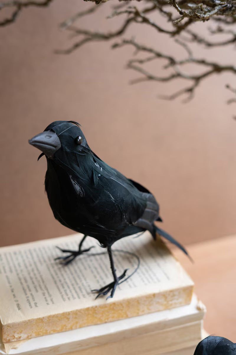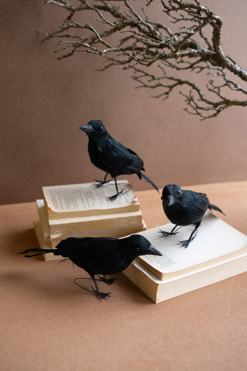 Need some fall decor that's not so scary? Try this set of three crow sculptures with black feathers. You can place these watchful creatures on bookshelves or mantles year-round or keep them for the fall holidays.