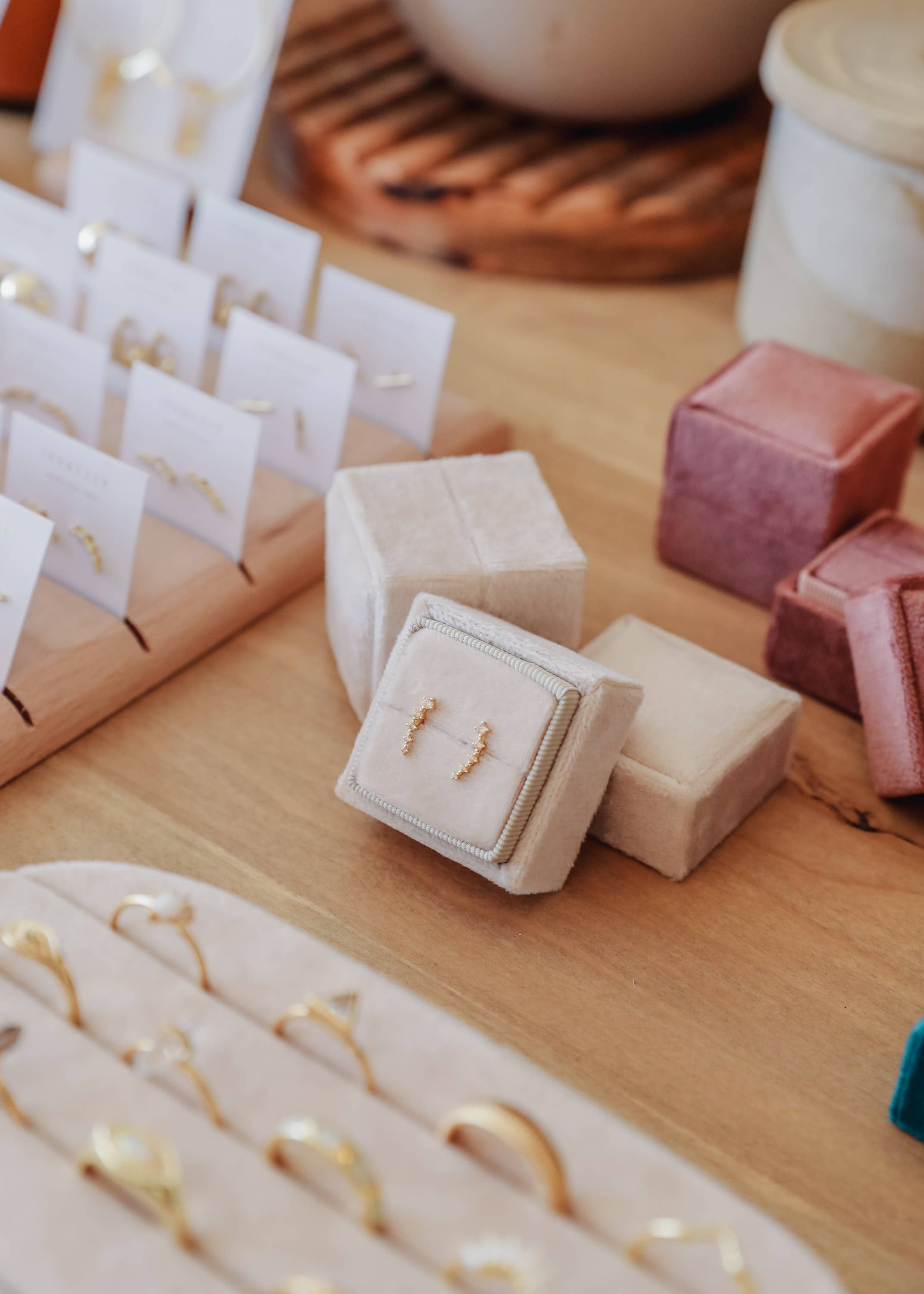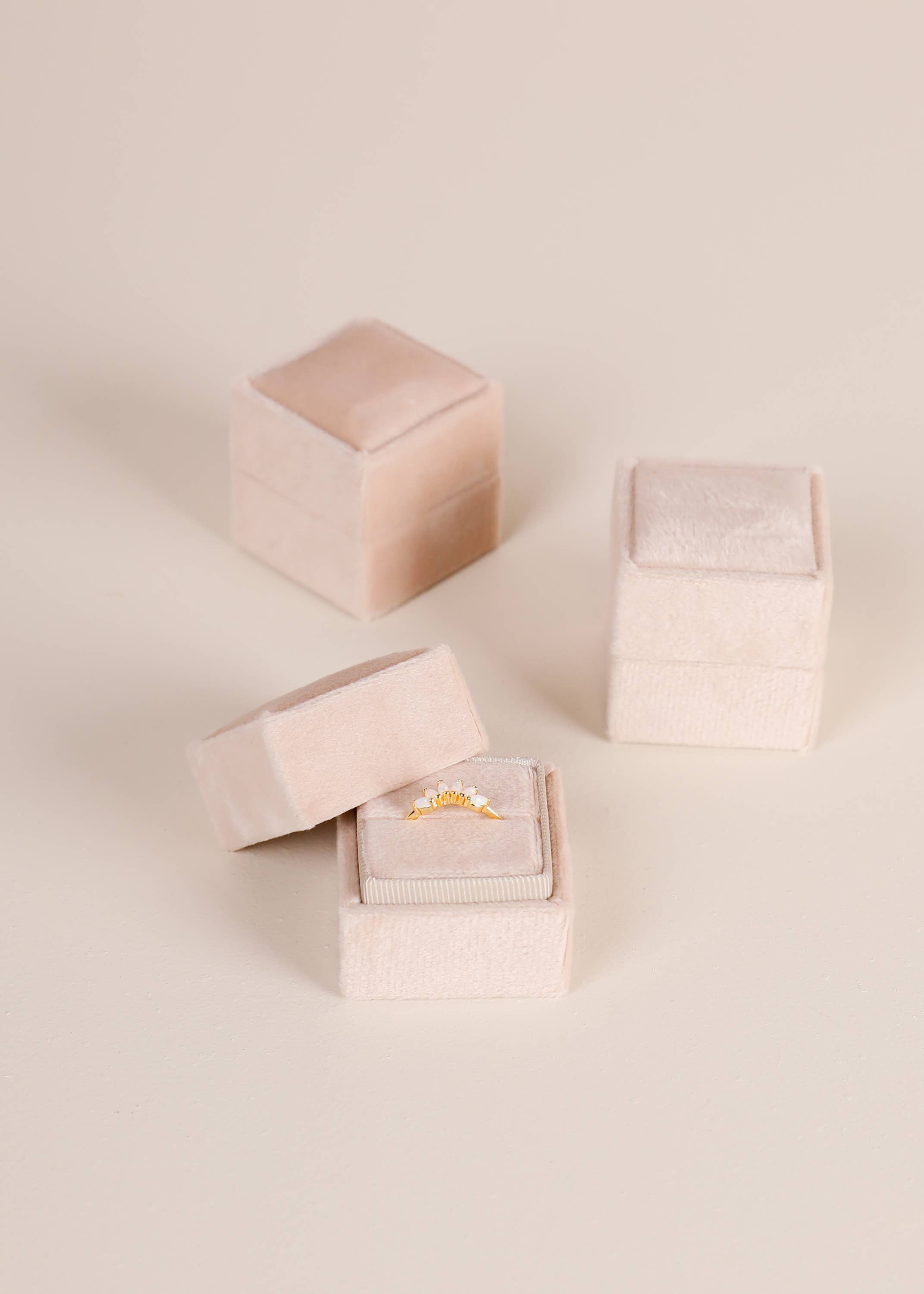 Velvet Jewelry Square Box - Cream