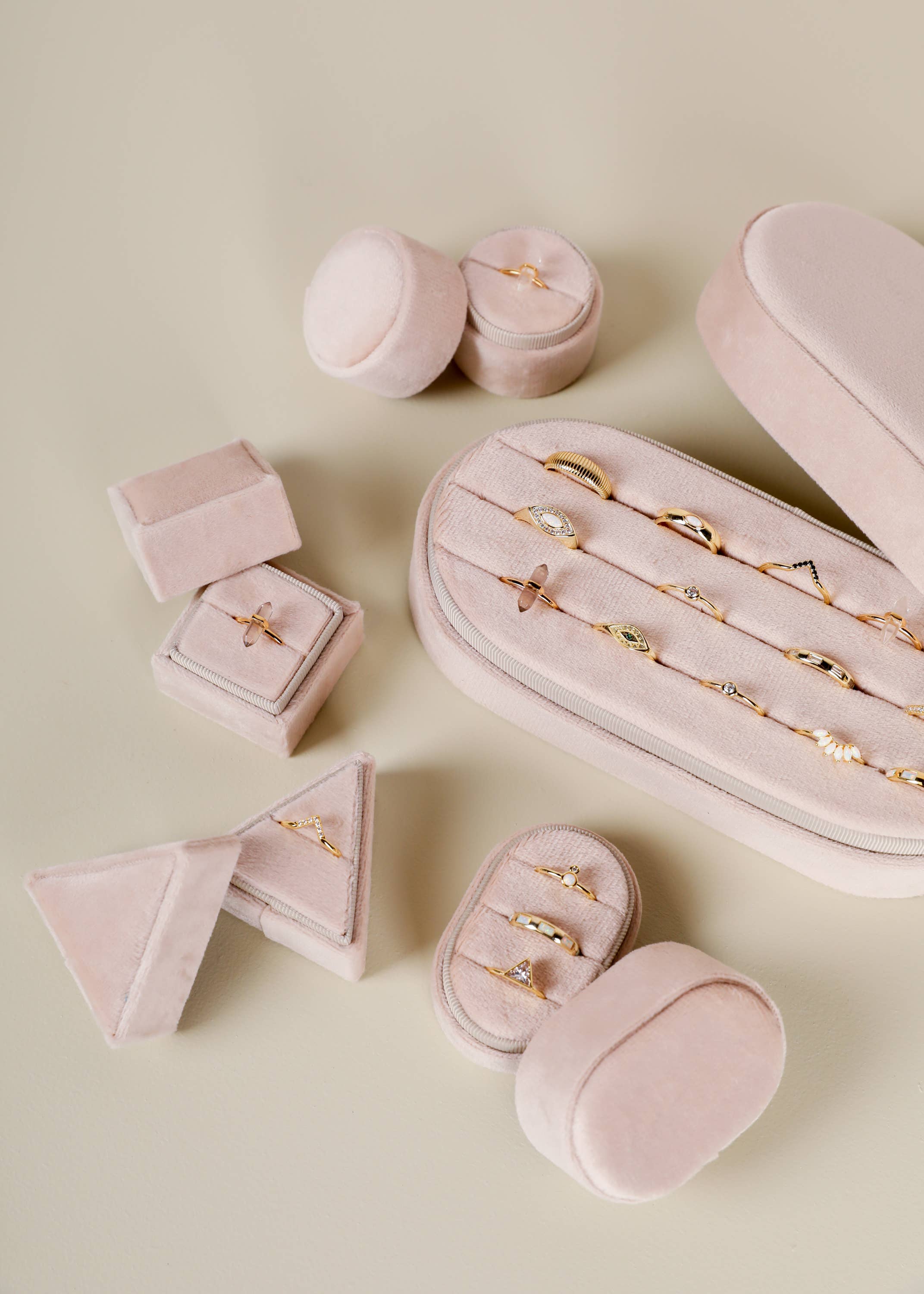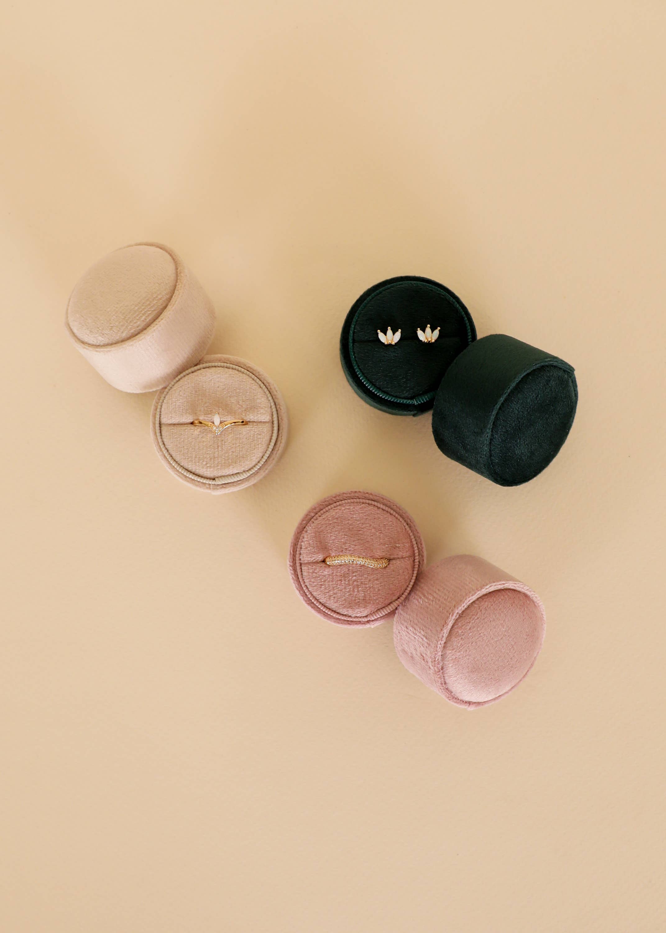 Velvet Jewelry Circle Box - Light Pink