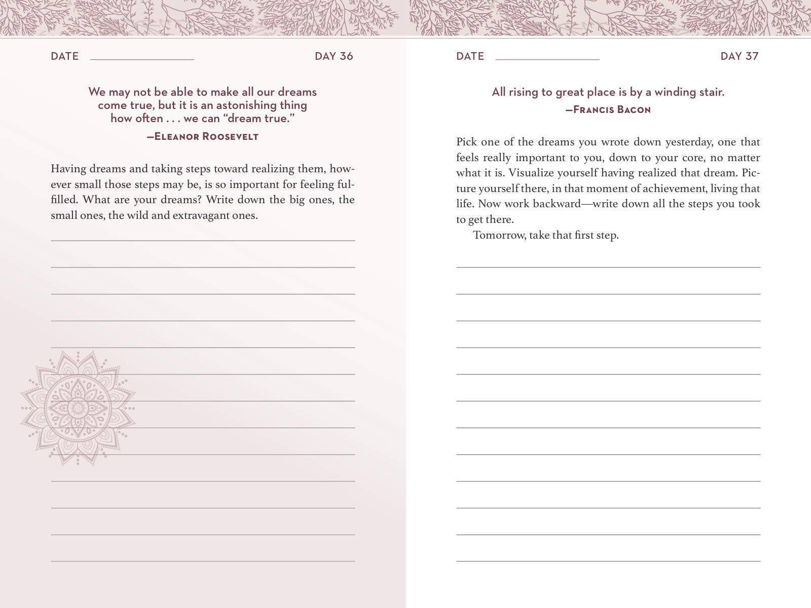 With 366 days of inspiring prompts, exercises, and tips on self-care, this beautiful gilded journal can help you focus holistically on your journey to become the best you—body, mind, and soul. When you truly understand yourself and your needs, you've taken the first steps to mastering self-care. This attractive journal, created by self-help author Mary Flannery, offers daily words of wisdom from inspiring figures throughout history—from Virgil to Eleanor Roosevelt—along with reflective prompts, advice, and creative exercises to help you develop mindfulness about your daily habits. Chart the things you can do every day to better love and appreciate yourself—from the simplest, such as embracing movement, repeating an affirmation, or focusing on your breathing, to the more profound, such as journaling to let go of negative thoughts, and making mindful lists of the good things in your life. Hardcover book, padded, with printed laminated cover; 4 x 6 inches; 376 pages.