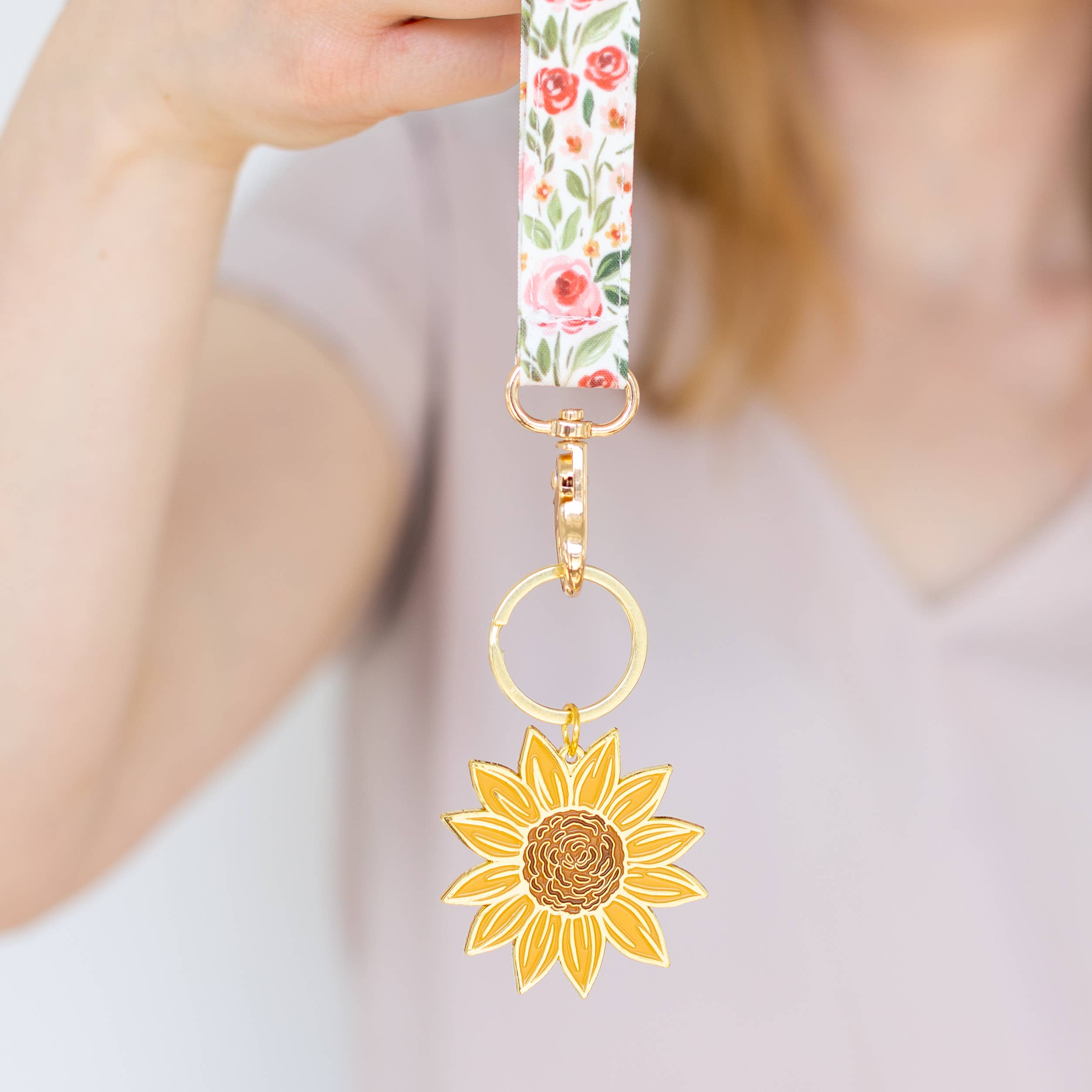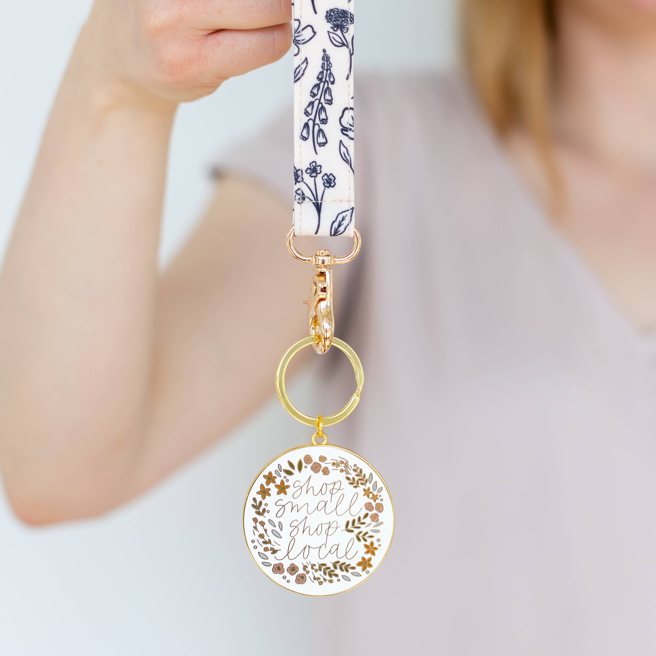 Line Drawn Peonies Metal Keychain 2.5x1.5 in.