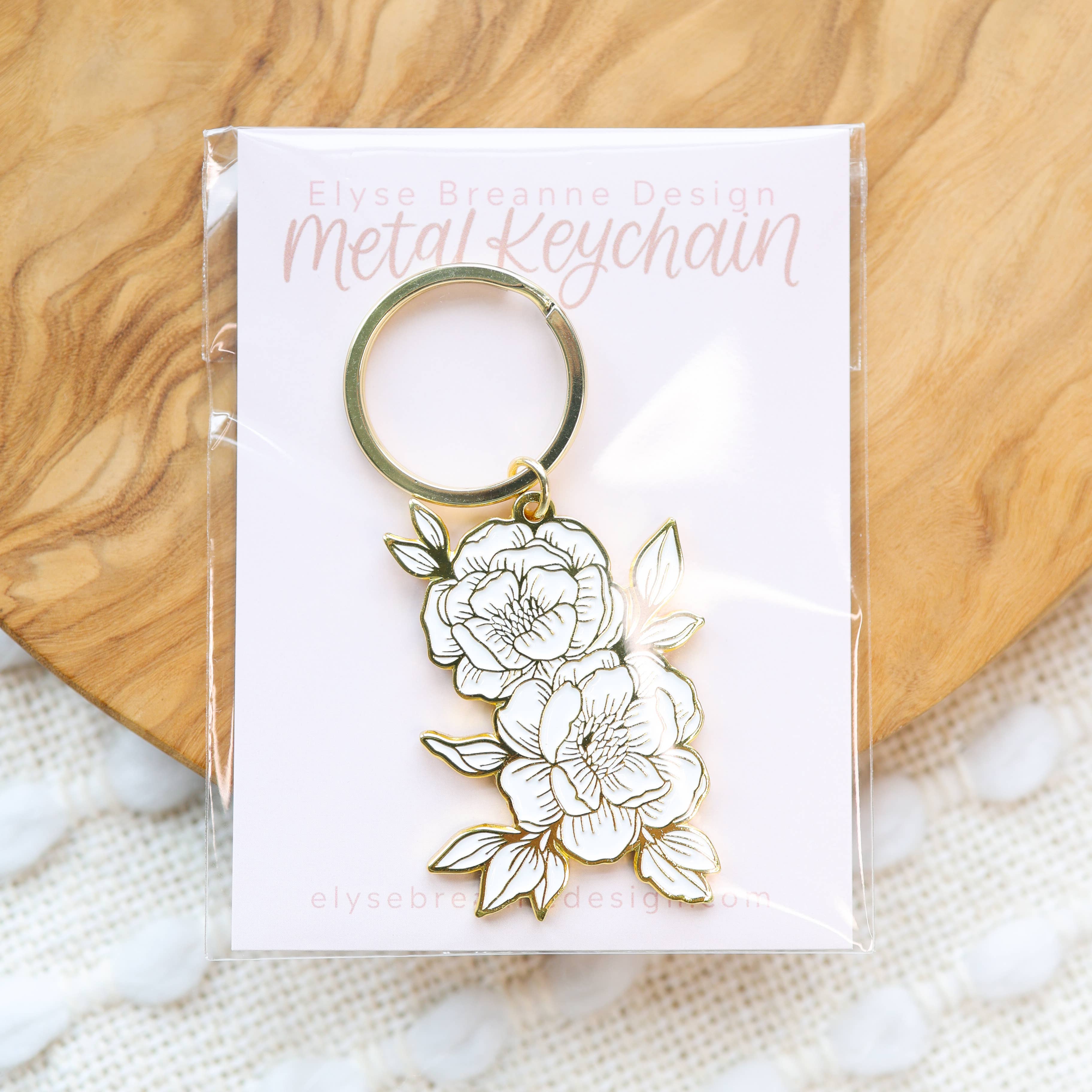 Crafted with precision, the Line Drawn Peonies Metal Keychain measures approximately 2.5 by 1.5 inches. Featuring a hard enamel fill that is carefully sealed, this keychain offers exceptional durability and resistance to water, ensuring it maintains its striking appearance over time. Its compact size makes it a practical accessory for daily use, while the elegant peony line drawing adds a refined artistic touch. This keychain is an excellent choice for those seeking a stylish yet resilient accessory that seamlessly blends aesthetics with functionality.
