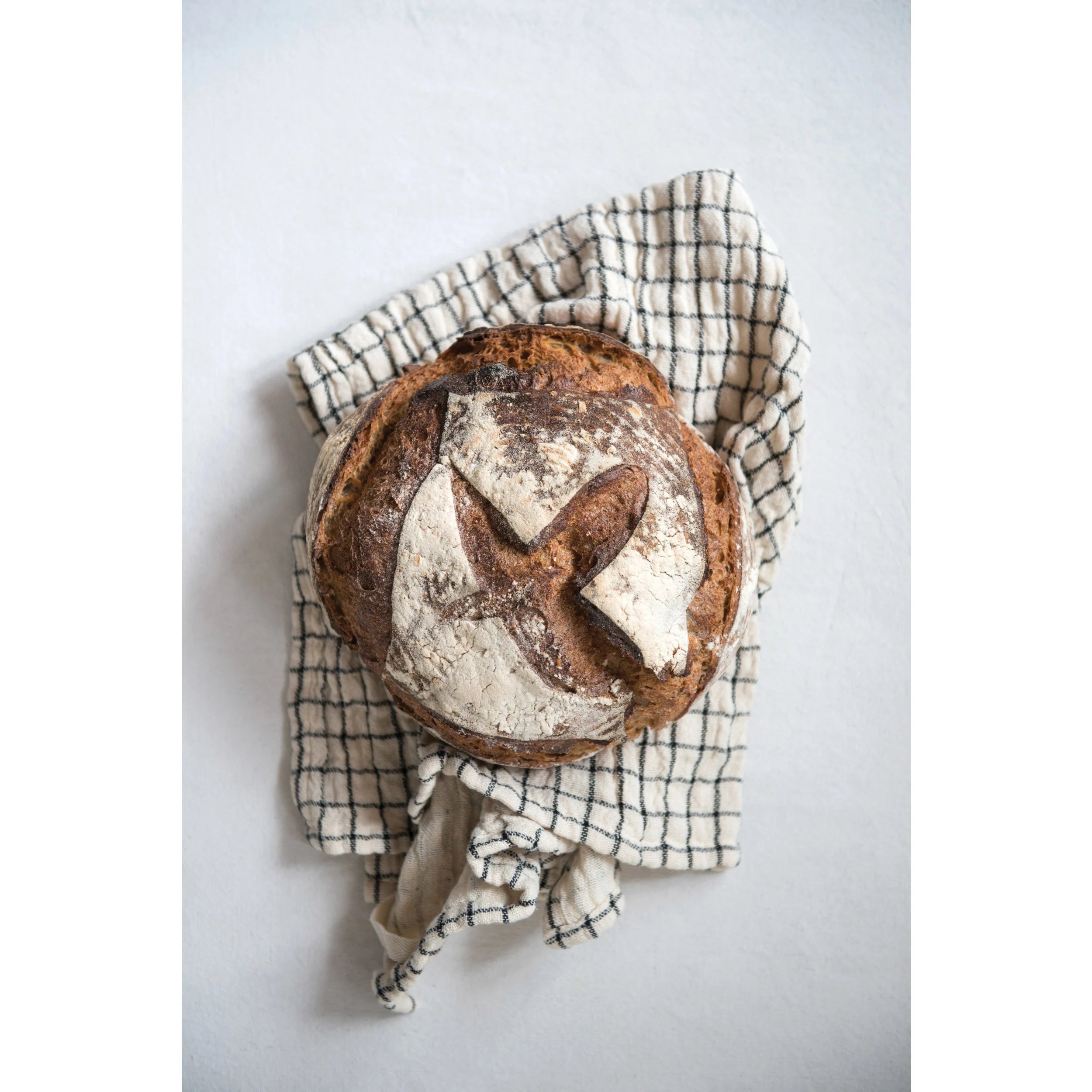 28"L x 18"W Cotton Tea Towel w/ Grid/Stripe Pattern, Natural & Black, 2 Styles