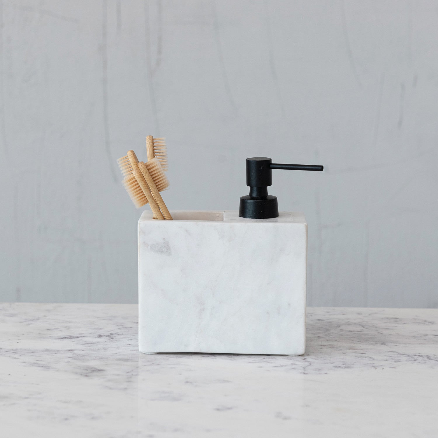 Instantly transform a simple powder room or vanity area into a spa-like sanctuary with our thoughtfully curated collection of beautiful bath décor. Explore a wide array of pieces that showcase a variety of styles and functions including soap dispensers, towel bars, soap dishes, toothbrush holders, storage containers, toilet paper holders, figures and figurines, and so much more. Choose from a wide array of material compositions from ceramic to stone and styles from modern farmhouse to coastal. Add a touch of comfort and luxury to daily routines or simply elevate a guest space to create a warm and welcoming ambiance that is guaranteed to impress. This strikingly minimalist soap dispenser showcases sleek marble construction with a contemporary pump. Display in a living space of any style from modern to Scandinavian. Add a touch of personal style to a bathroom or powder room with this decorative soap dispenser. Made from marble and stainless steel.