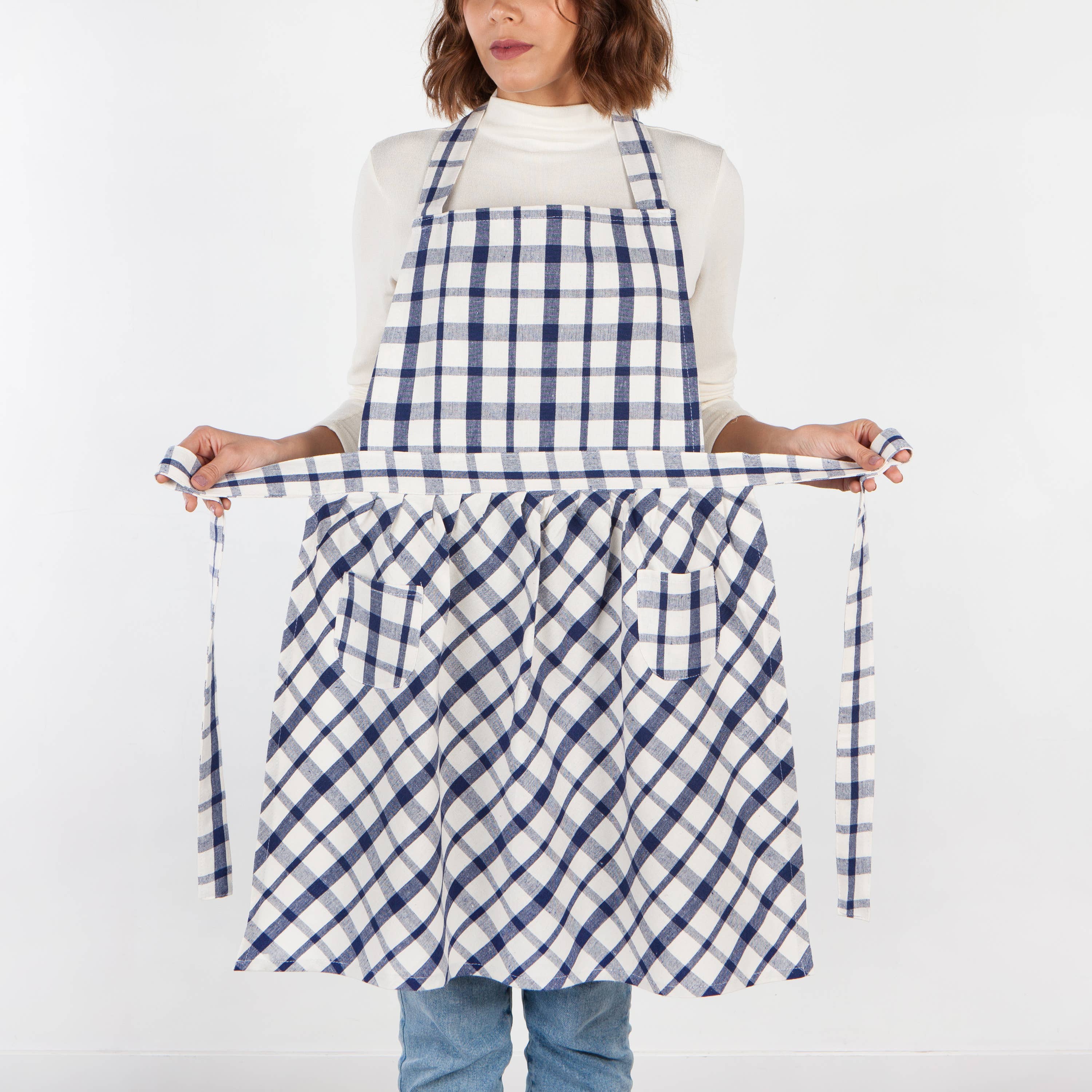 Conjure up images of idyllic picnics and warm summer days as you whip up your favorite dishes wearing this belle plaid classic apron by now designs. Our classic apron is designed with comfort in mind. Whether you're making nightly dinners or special family feasts, the traditional silhouette and simple pleats of this apron provide a flattering fit and keep your clothes protected. Two large front pockets make it easy to keep your favorite recipes or utensils close, and the apron is simple to clean. Size: W27.5 x L29in | one size fits most Material content: 80% recycled cotton / 20% recycled polyester Care instructions: machine wash warm, tumble dry low, high iron, do not bleach