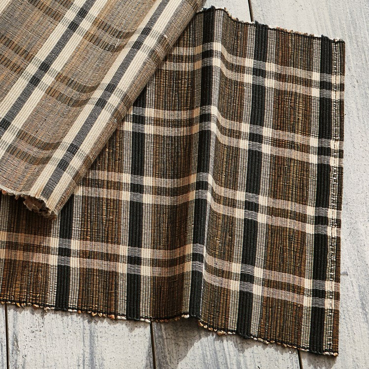 Bring warmth and style to your dining experience with the Bodhi Plaid Table Runner 14"x72". Its classic plaid pattern adds a timeless touch, perfect for autumn gatherings or everyday use. Crafted from durable water hyacinth, this runner combines natural texture with sophisticated design, enhancing any table setting while protecting the surface from spills and scratches. Its versatile size fits most tables, making it easy to coordinate with different dinnerware and centerpieces. Elevate your dining décor effortlessly with this elegant and functional addition.