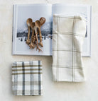Stonewashed Cotton Tea Towel w/ Grid/Plaid Pattern - White & Green