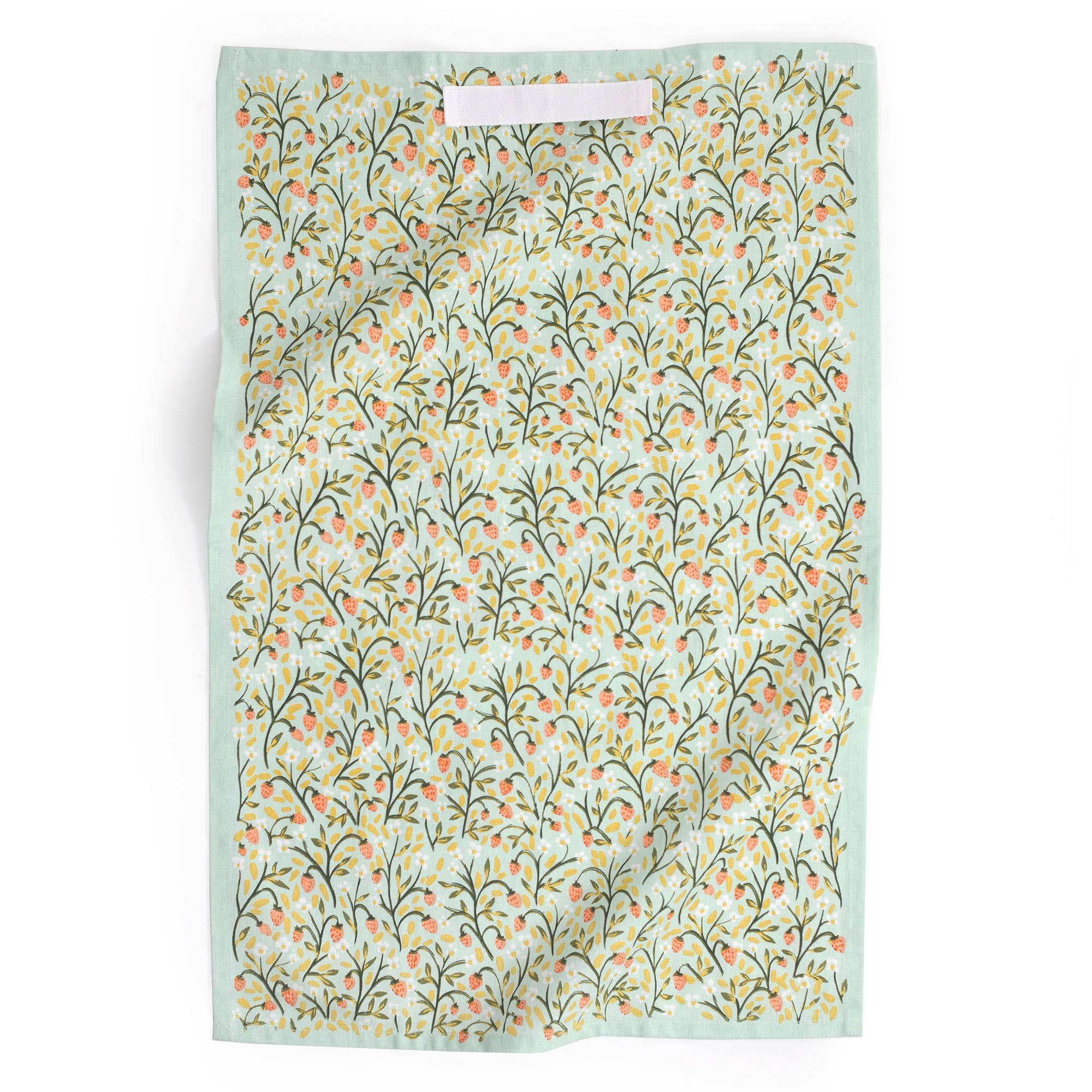 Bring a touch of garden charm to your kitchen with the Strawberry Meadow Floral Kitchen Towel. Adorned with a delightful strawberry and floral pattern, this towel adds a vibrant, fresh feel to your cooking space while offering practical functionality for all your kitchen needs.