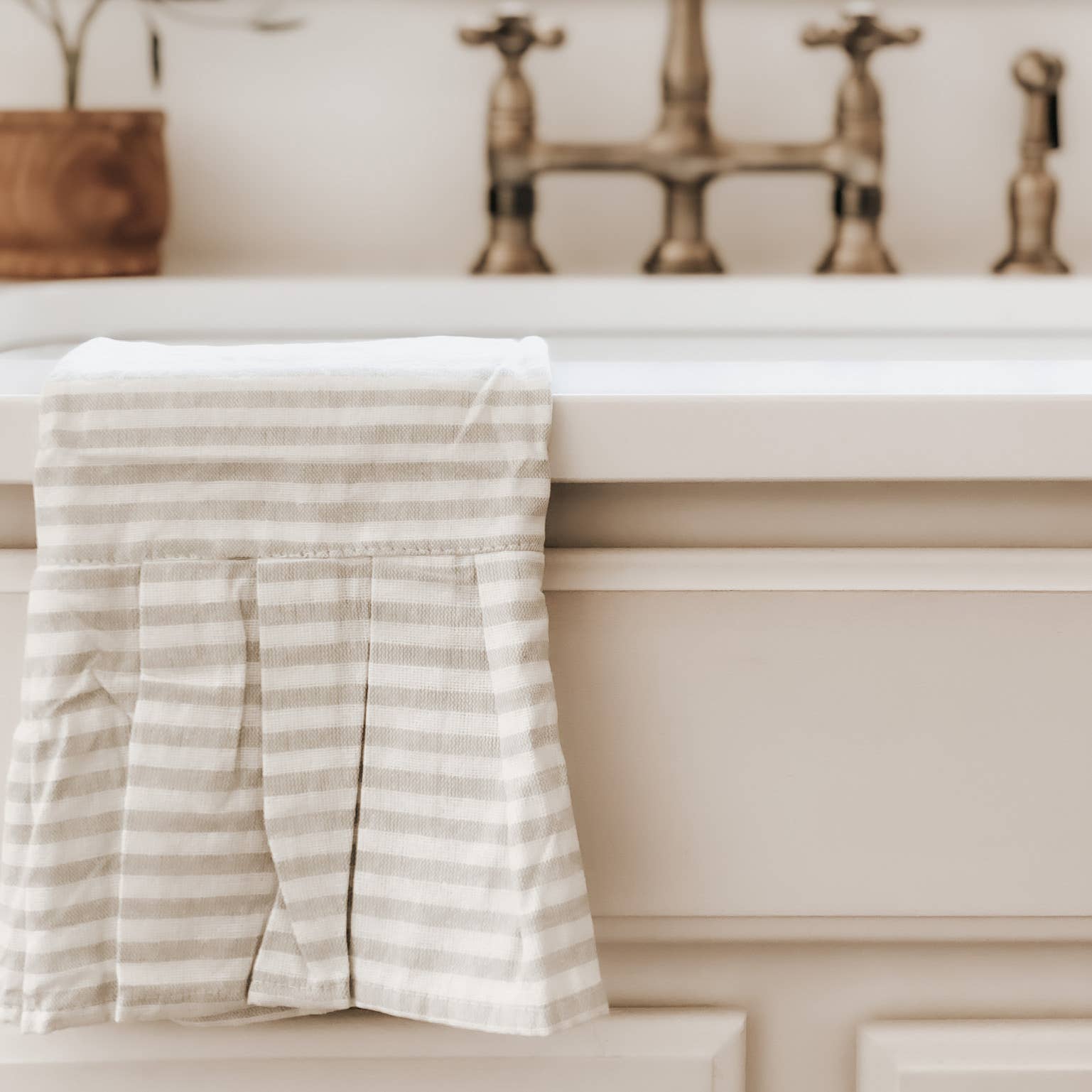 Striped Hand Towel with Ruffle, Tan - Home Decor & Gifts