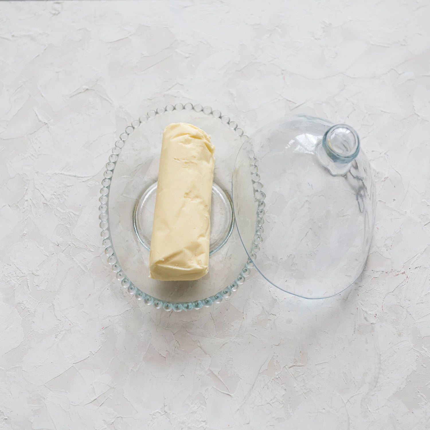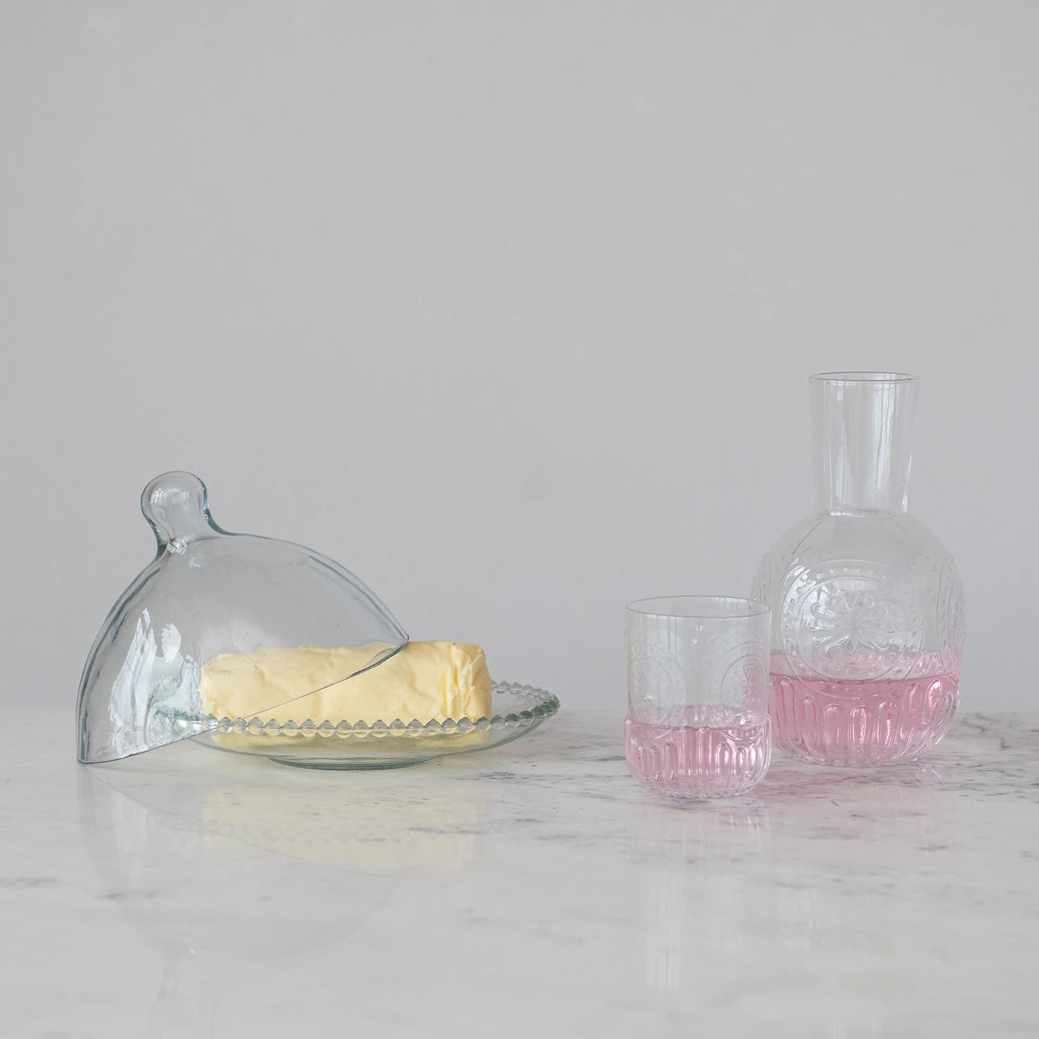 Glass Cloche w/ Hobnail Edge Tray, Set of 2